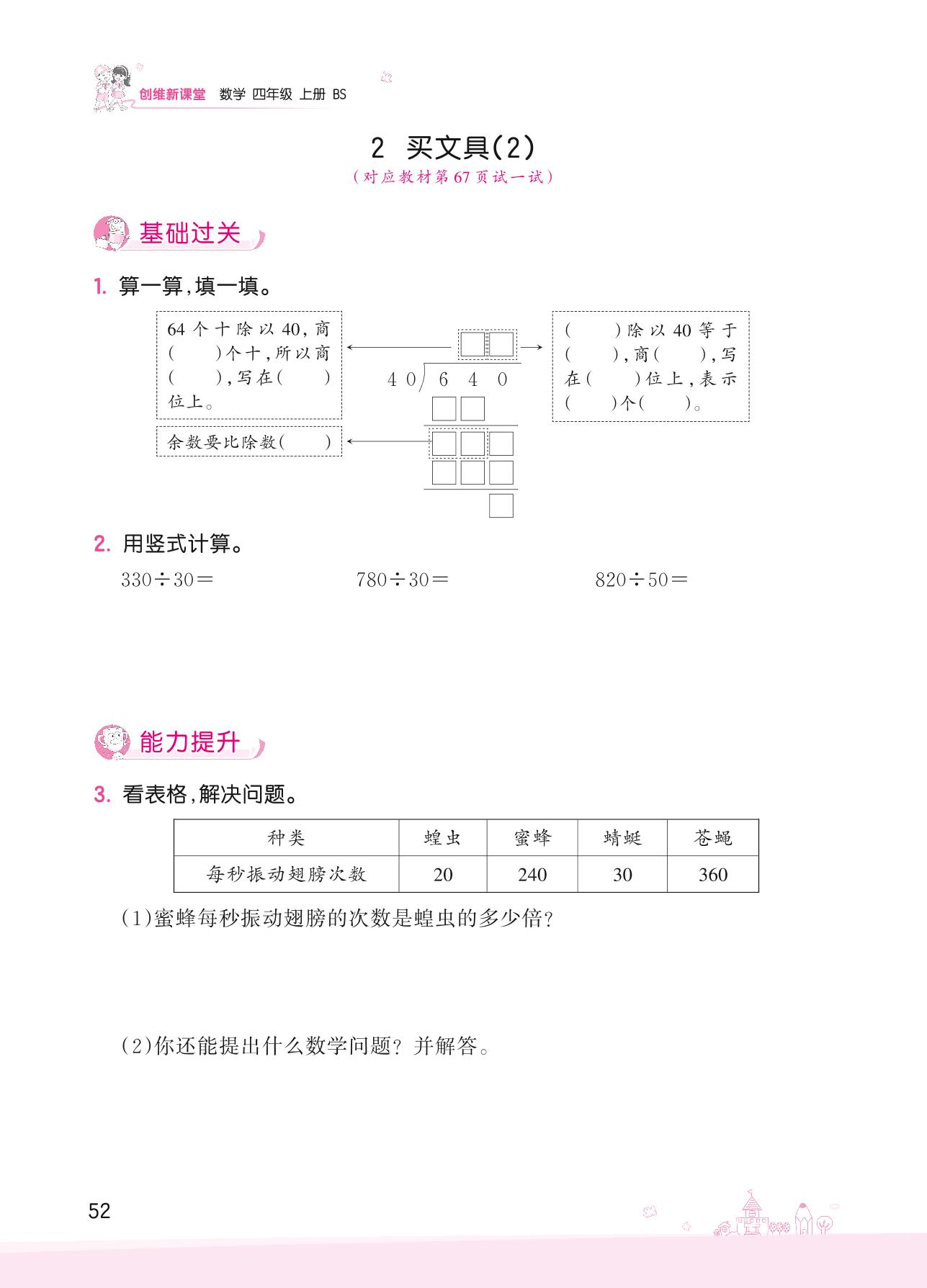 2022上册四年级数学北师版 六 除法——2 买文具(2)