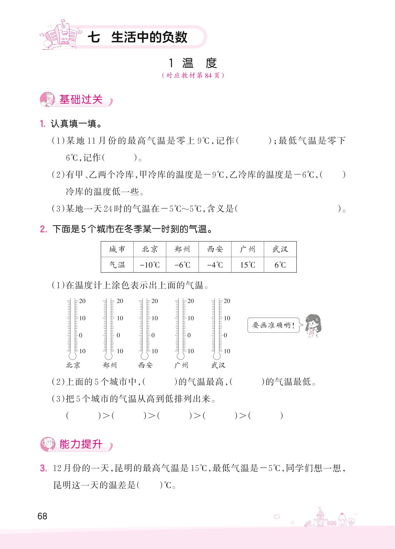 2022上册四年级数学北师版 七 生活中的负数——1 温度