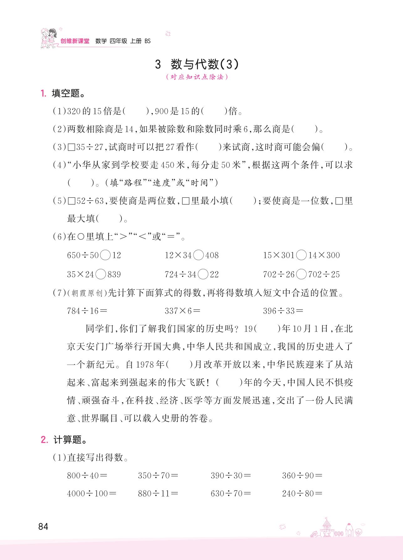 2022上册四年级数学北师版 总复习——3 数与代数(3)