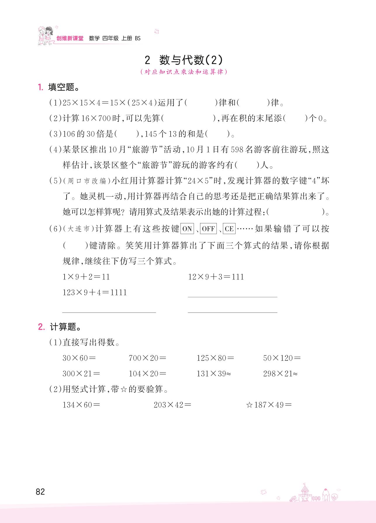 2022上册四年级数学北师版 总复习——2 数与代数(2)