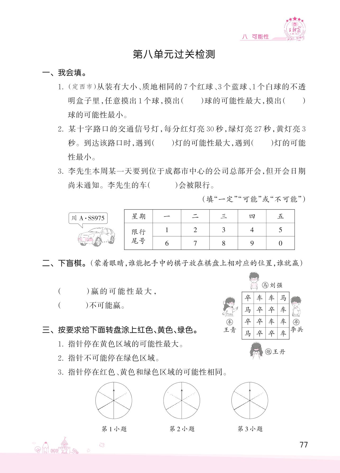 2022上册四年级数学北师版 八 可能性——第八单元过关检测