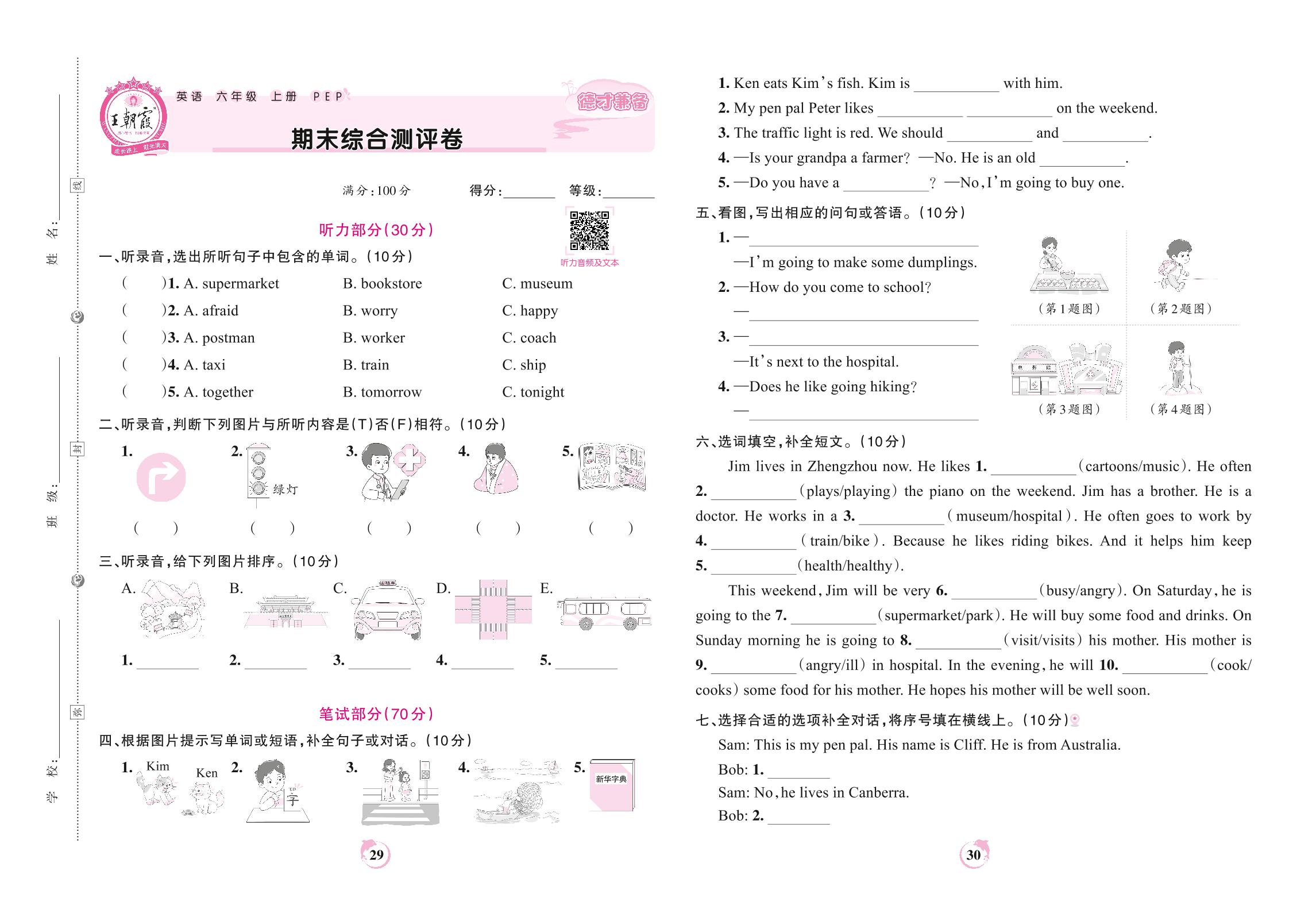 2022上册六年级英语人教PEP版 期末综合测评卷