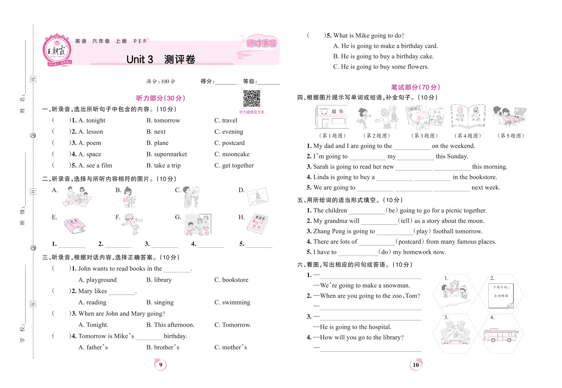 六年级英语人教PEP版(三起始)上册单元卷