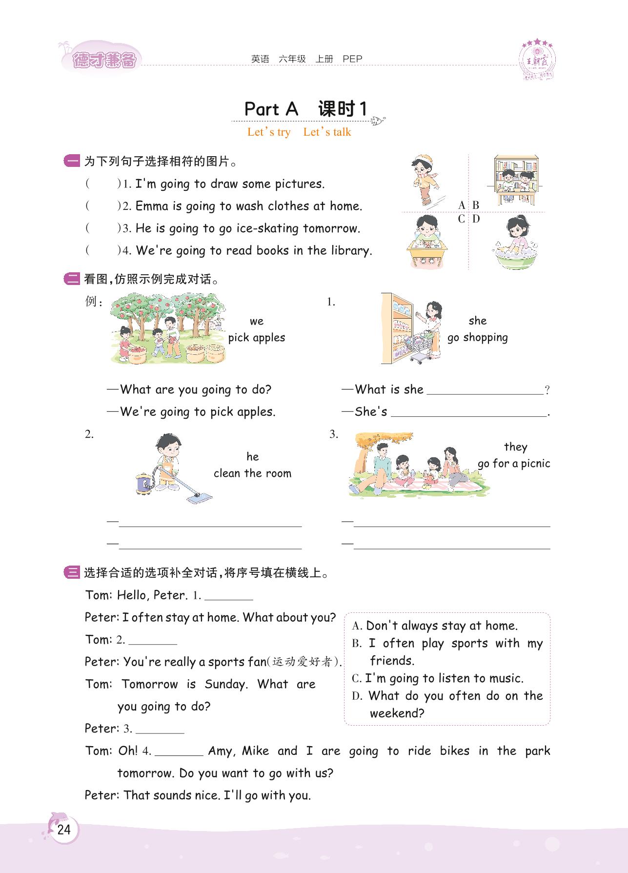 2022上册六年级英语人教PEP版 Unit 3 Part A—课时 1 Let’s try Let’s talk