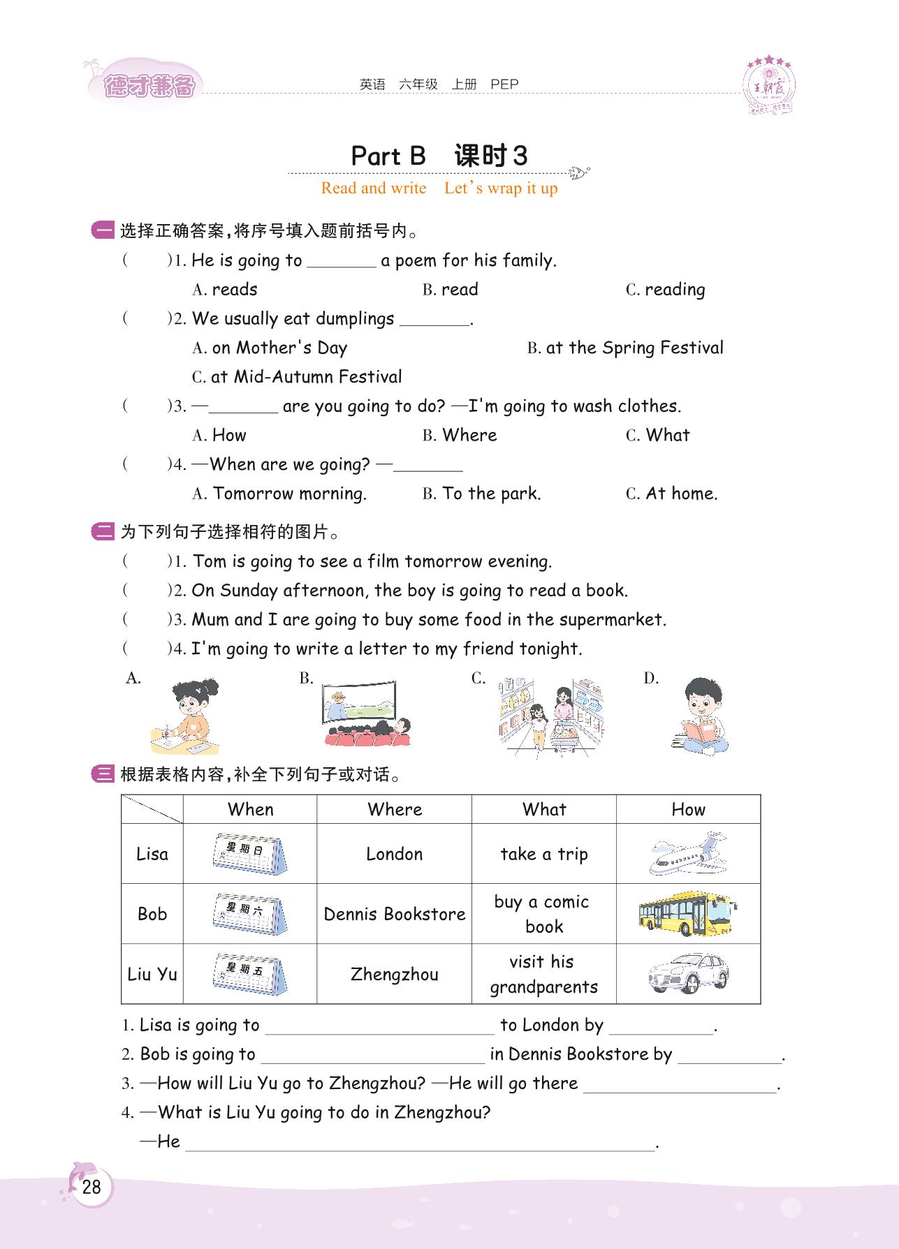 2022上册六年级英语人教PEP版 Unit 3 Part B—课时 3 Read and write Let’s wrap it up