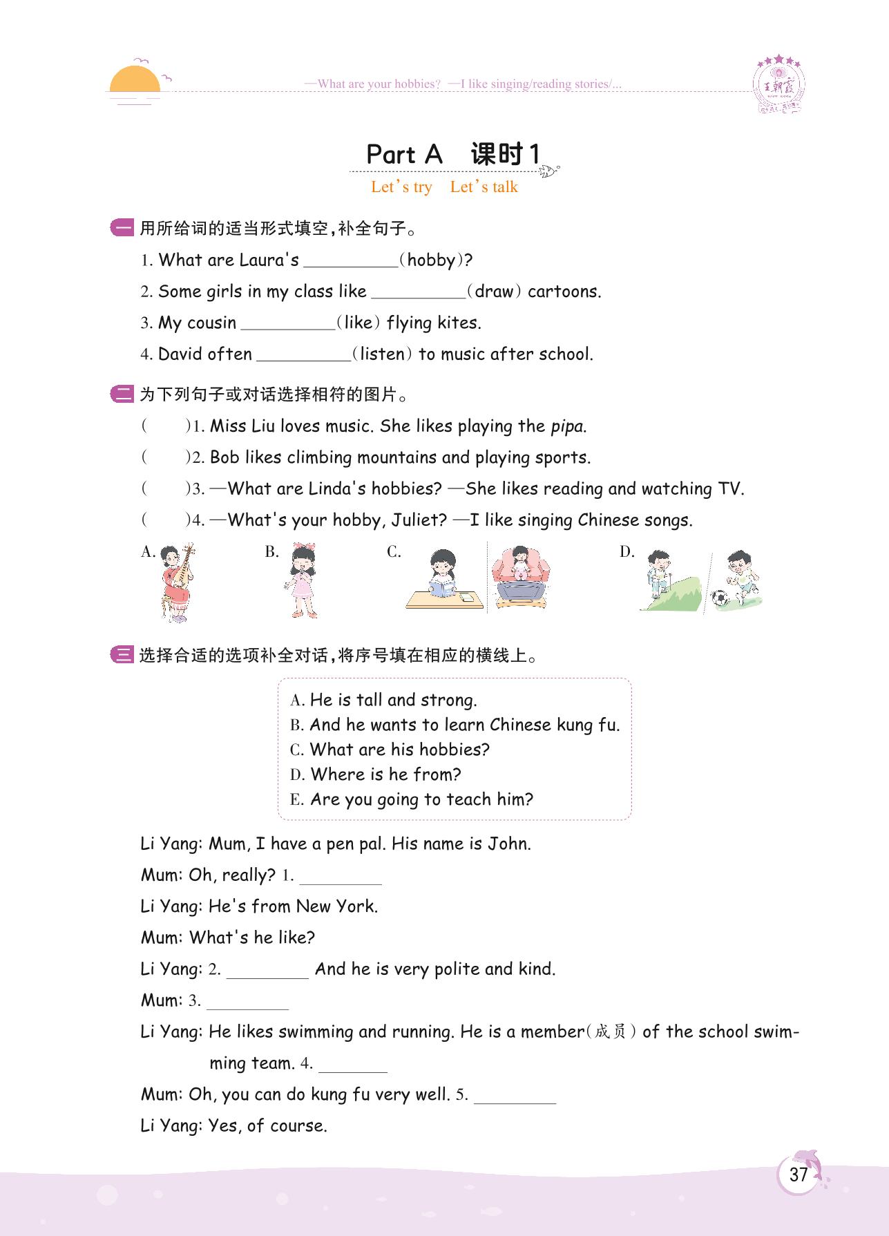 2022上册六年级英语人教PEP版 Unit 4 Part A—课时 1 Let’s try Let’s talk