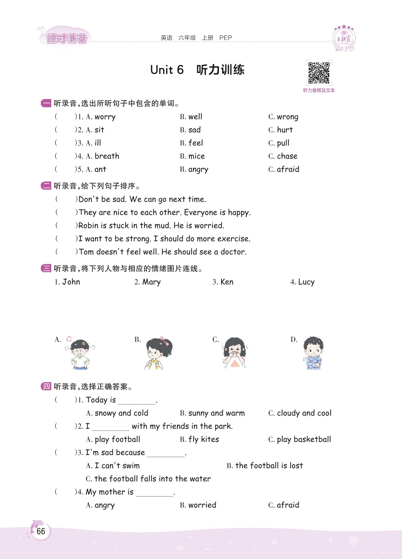 2022上册六年级英语人教PEP版 Unit 6 听力训练