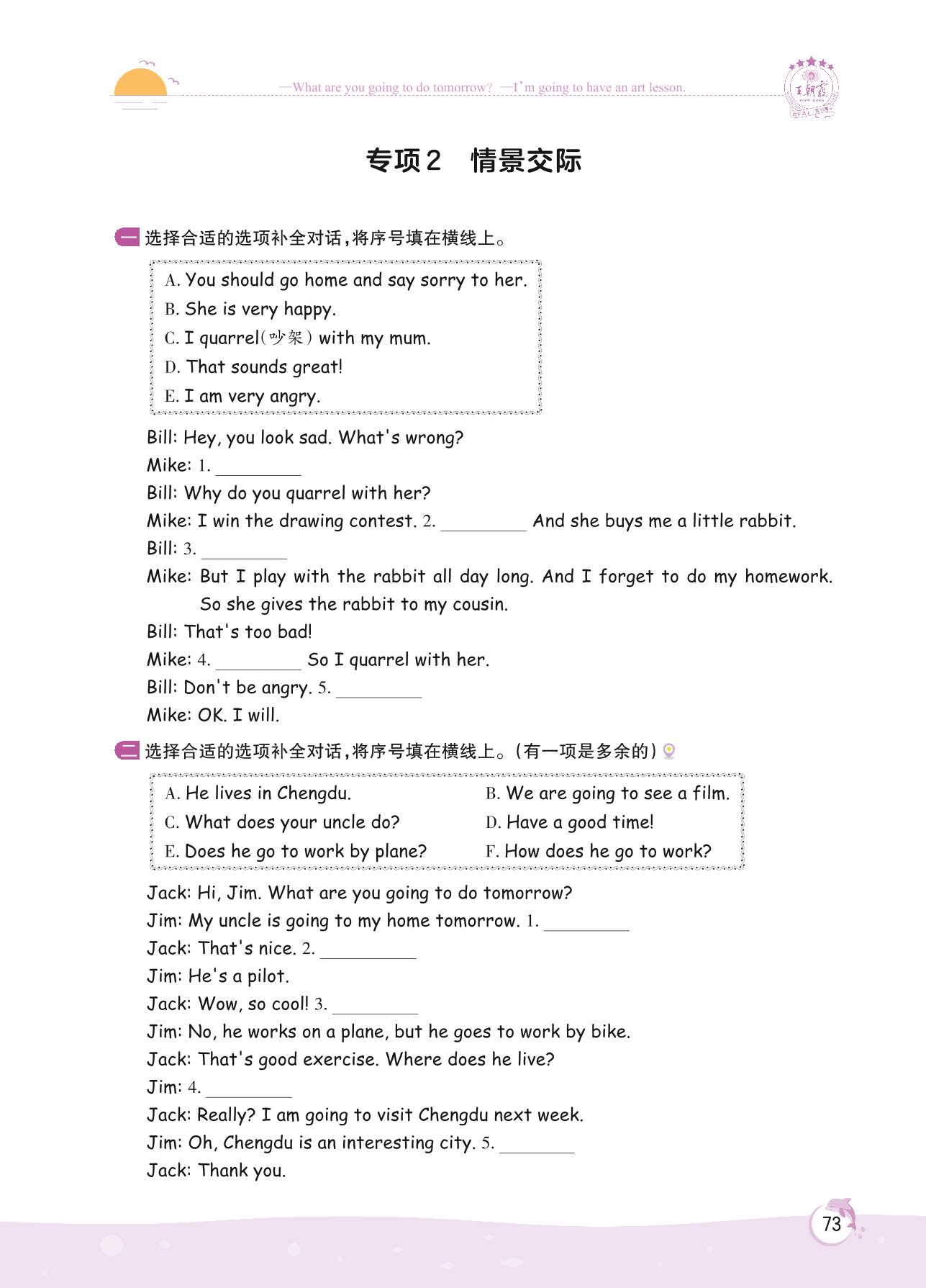 2022上册六年级英语人教PEP版 专项 2 情景交际