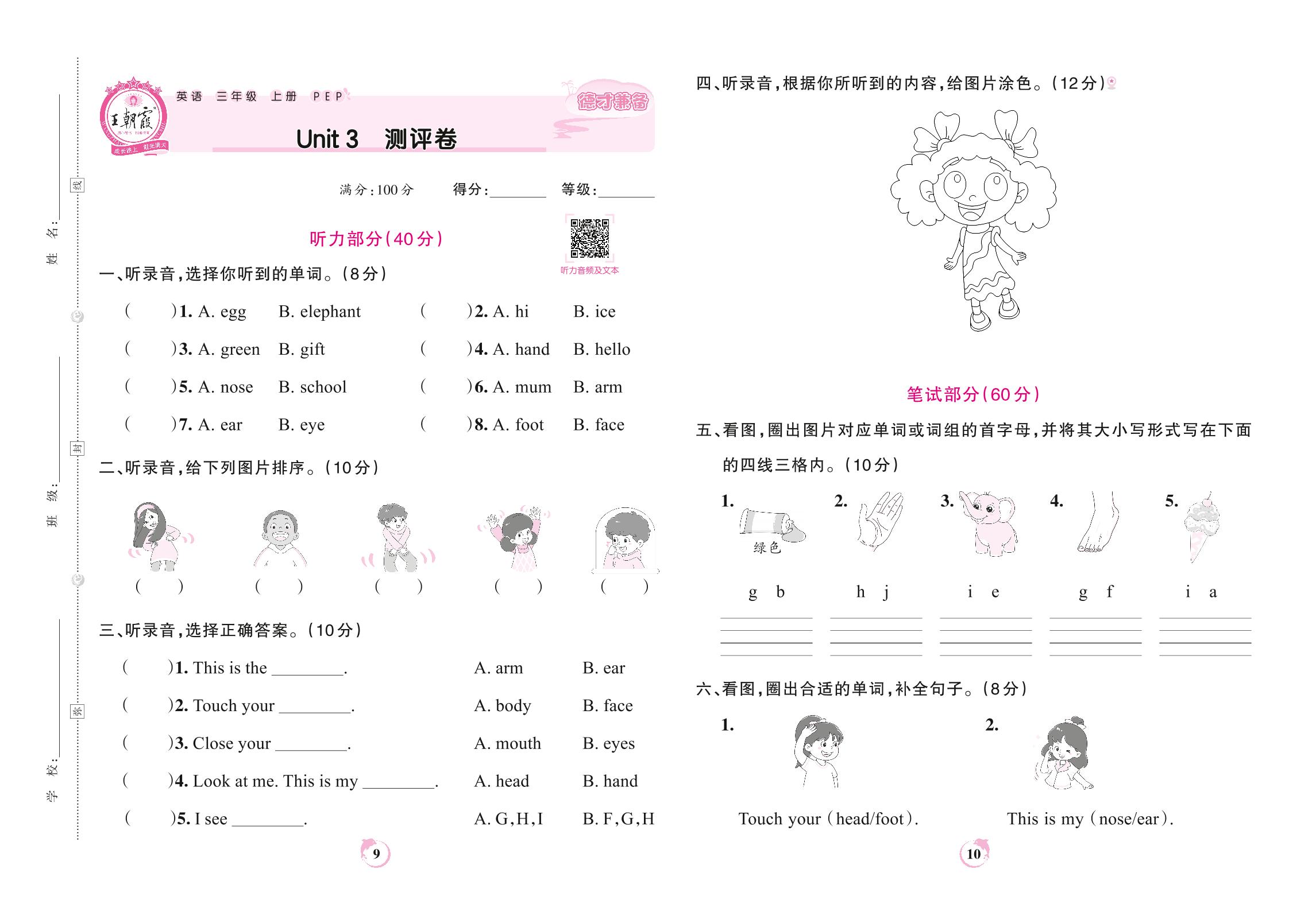 2022上册三年级英语人教PEP版 Unit 3 测评卷