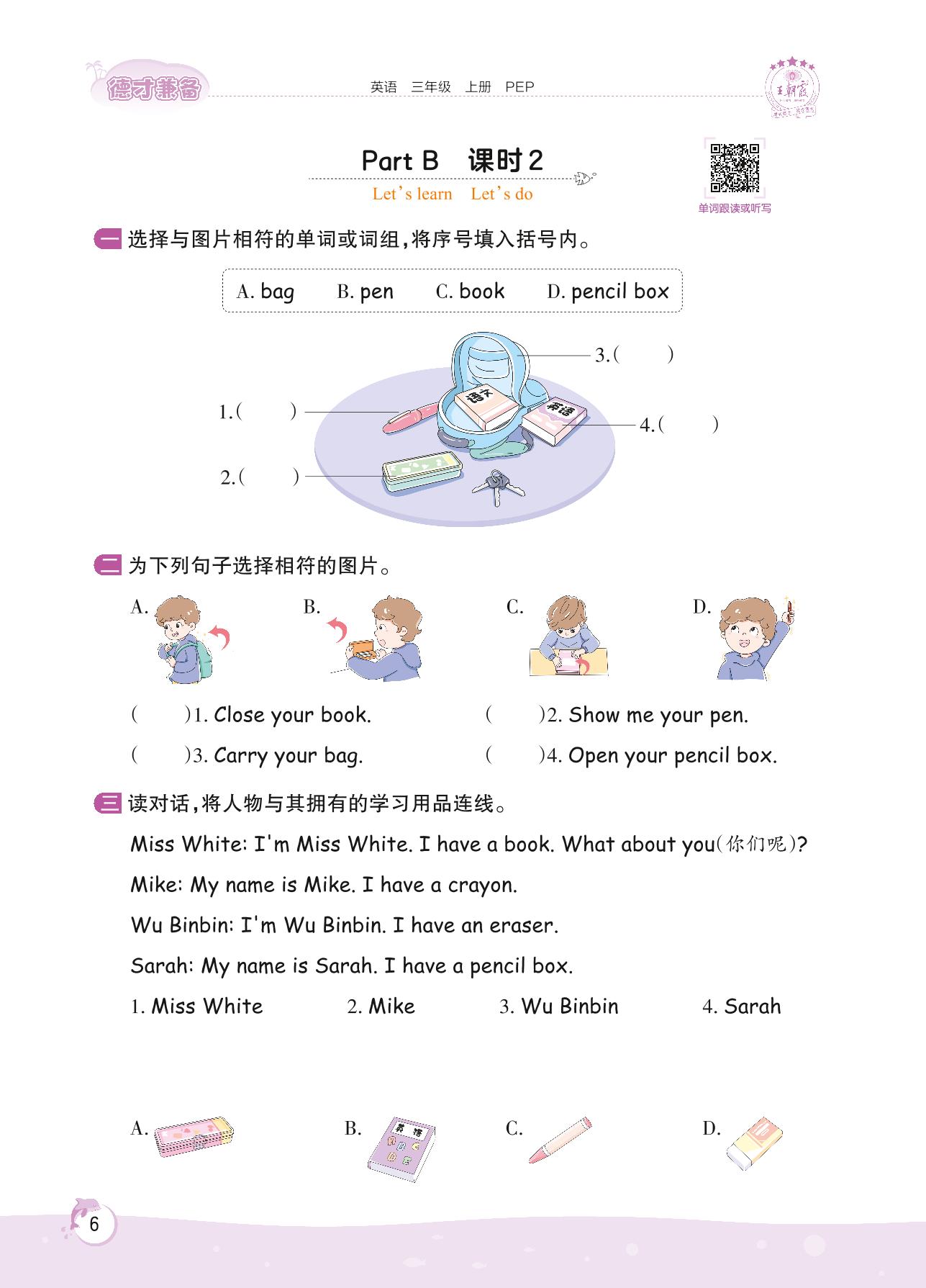 2022上册三年级英语人教PEP版 Unit 1 Part B—课时 2 Let’s learn Let’s do