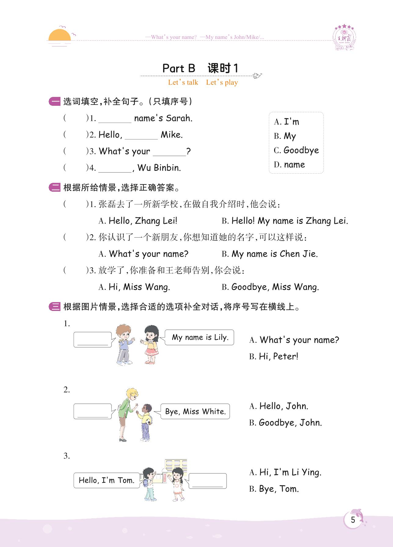 2022上册三年级英语人教PEP版 Unit 1 Part B—课时 1 Let’s talk Let’s play