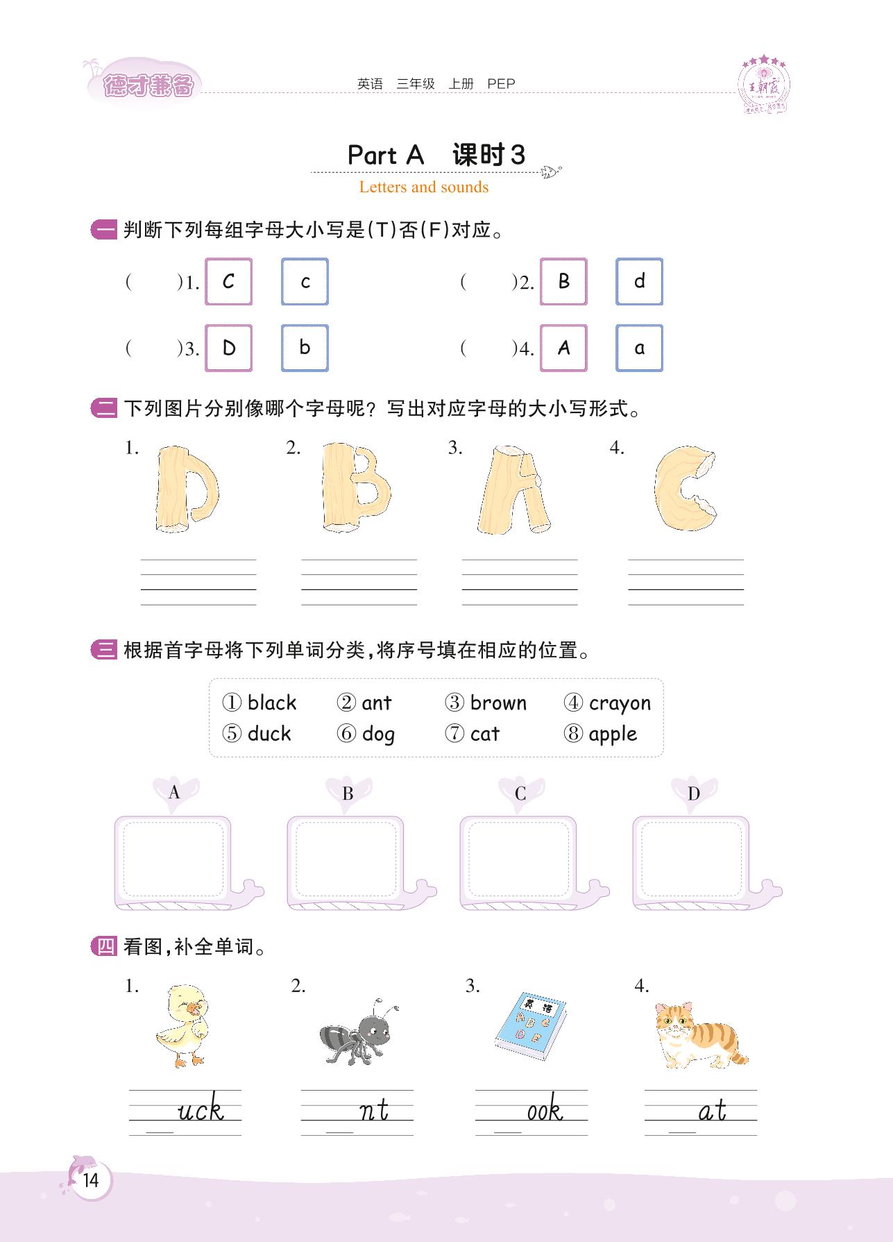 2022上册三年级英语人教PEP版 Unit 2 Part A—课时 3 Letters and sounds