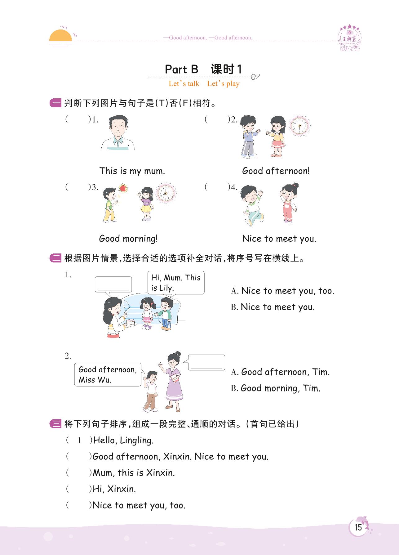 2022上册三年级英语人教PEP版 Unit 2 Part B—课时 1 Let’s talk Let’s play