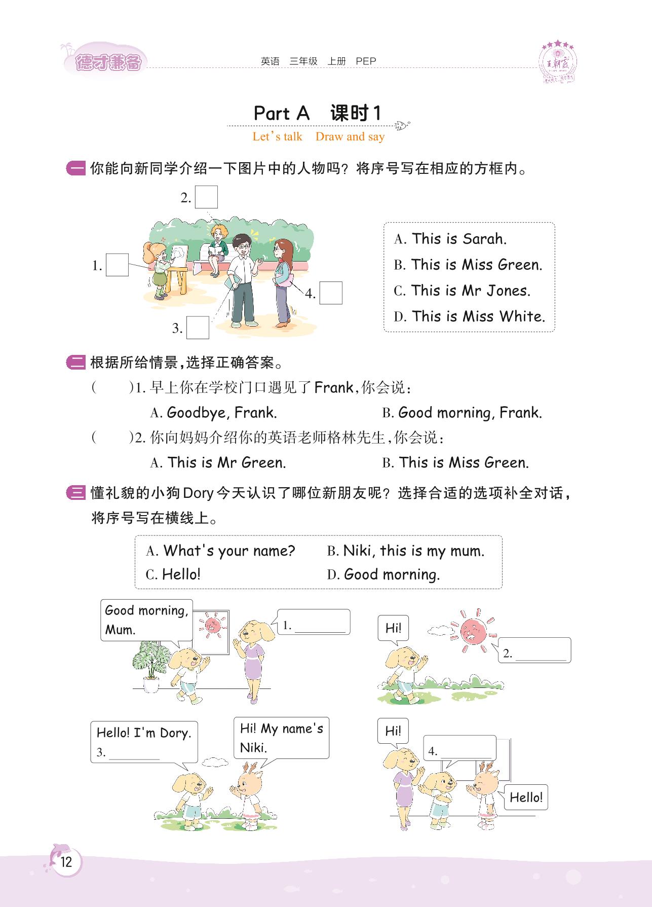 2022上册三年级英语人教PEP版 Unit 2 Part A—课时 1 Let’s talk Draw and say