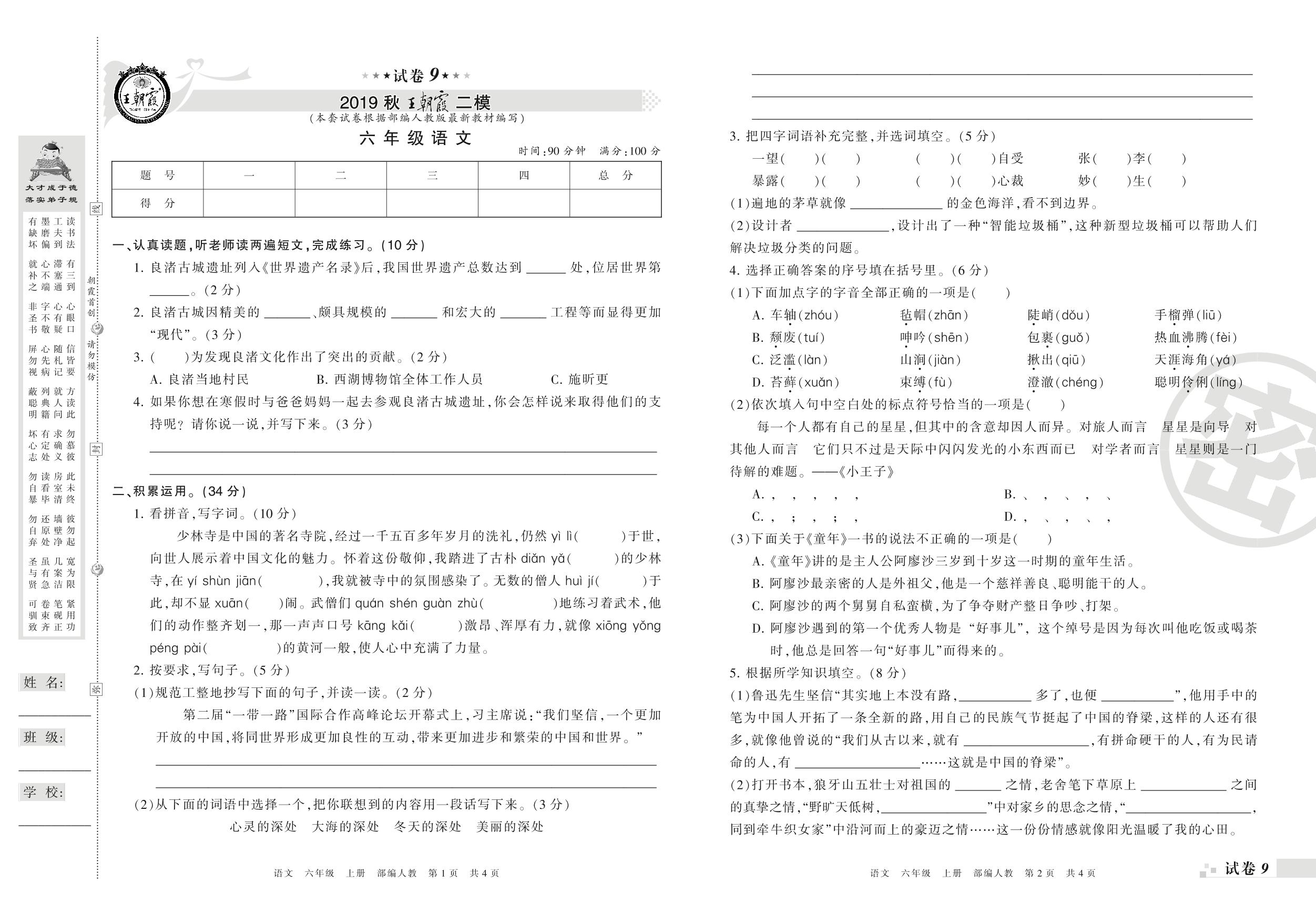 王朝霞期末模拟卷六年级上册语文(人教版)_R21080232811【9】