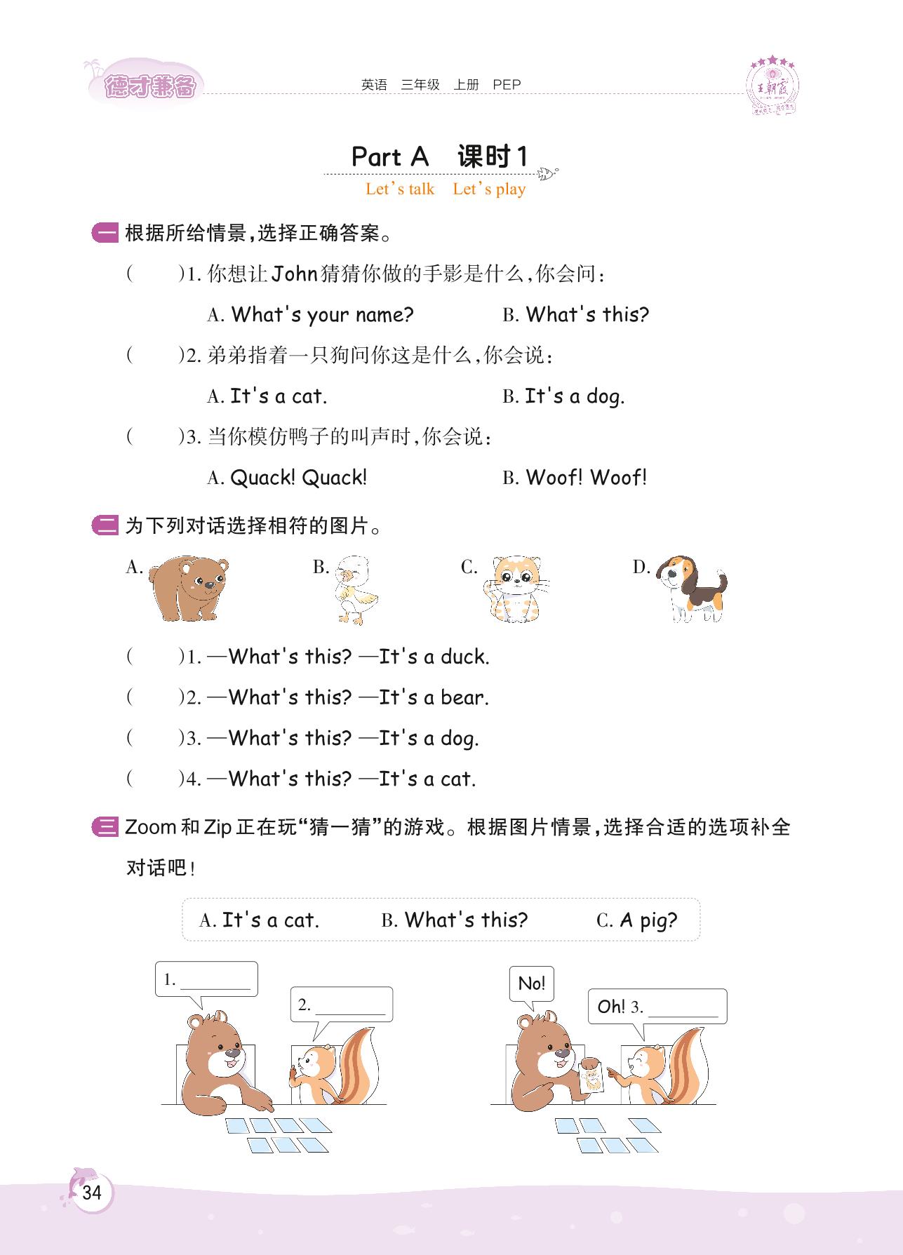 2022上册三年级英语人教PEP版 Unit 4 Part A—课时 1 Let’s talk Let’s play