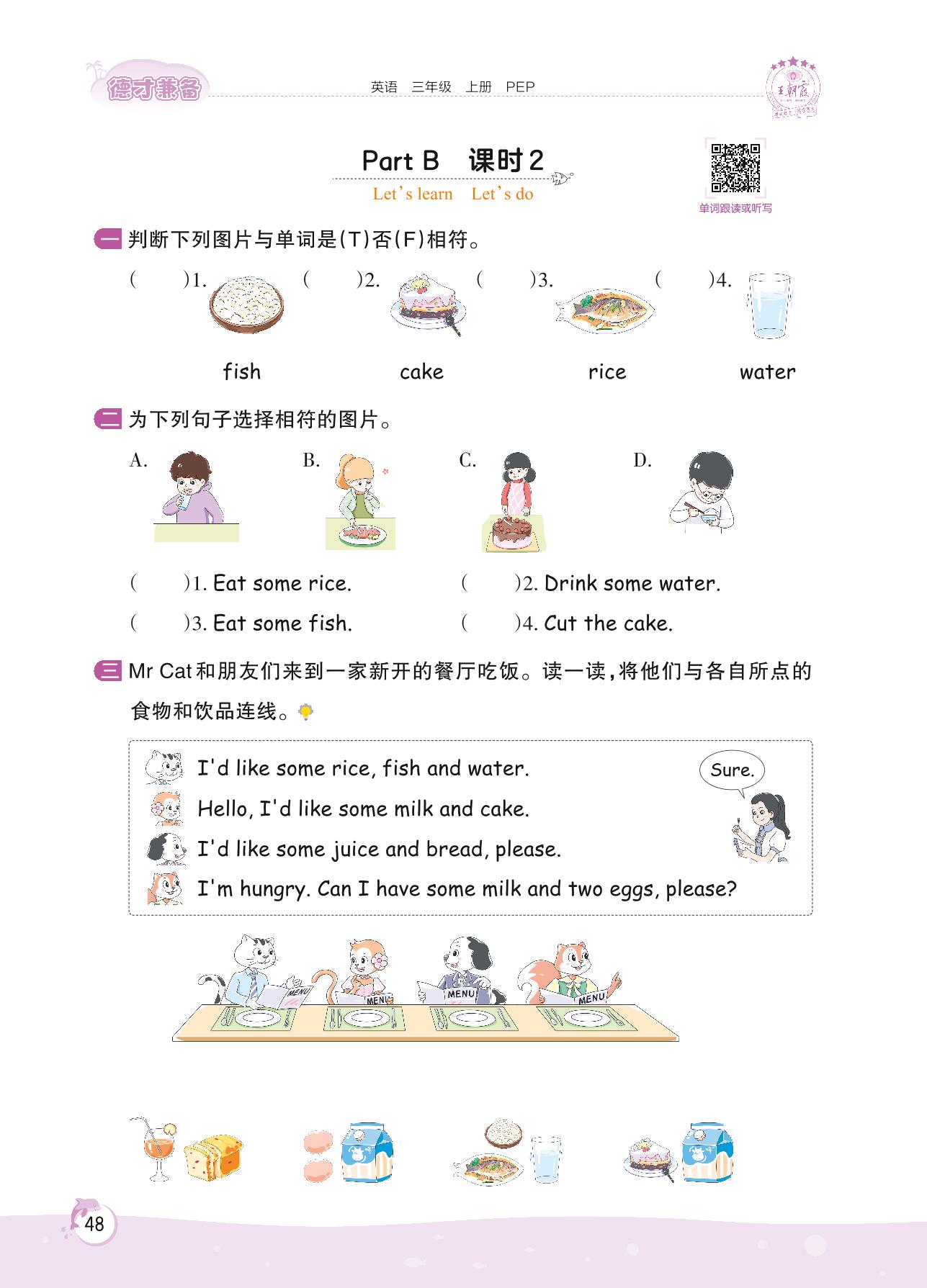 2022上册三年级英语人教PEP版 Unit 5 Part B—课时 2 Let’s learn Let’s do