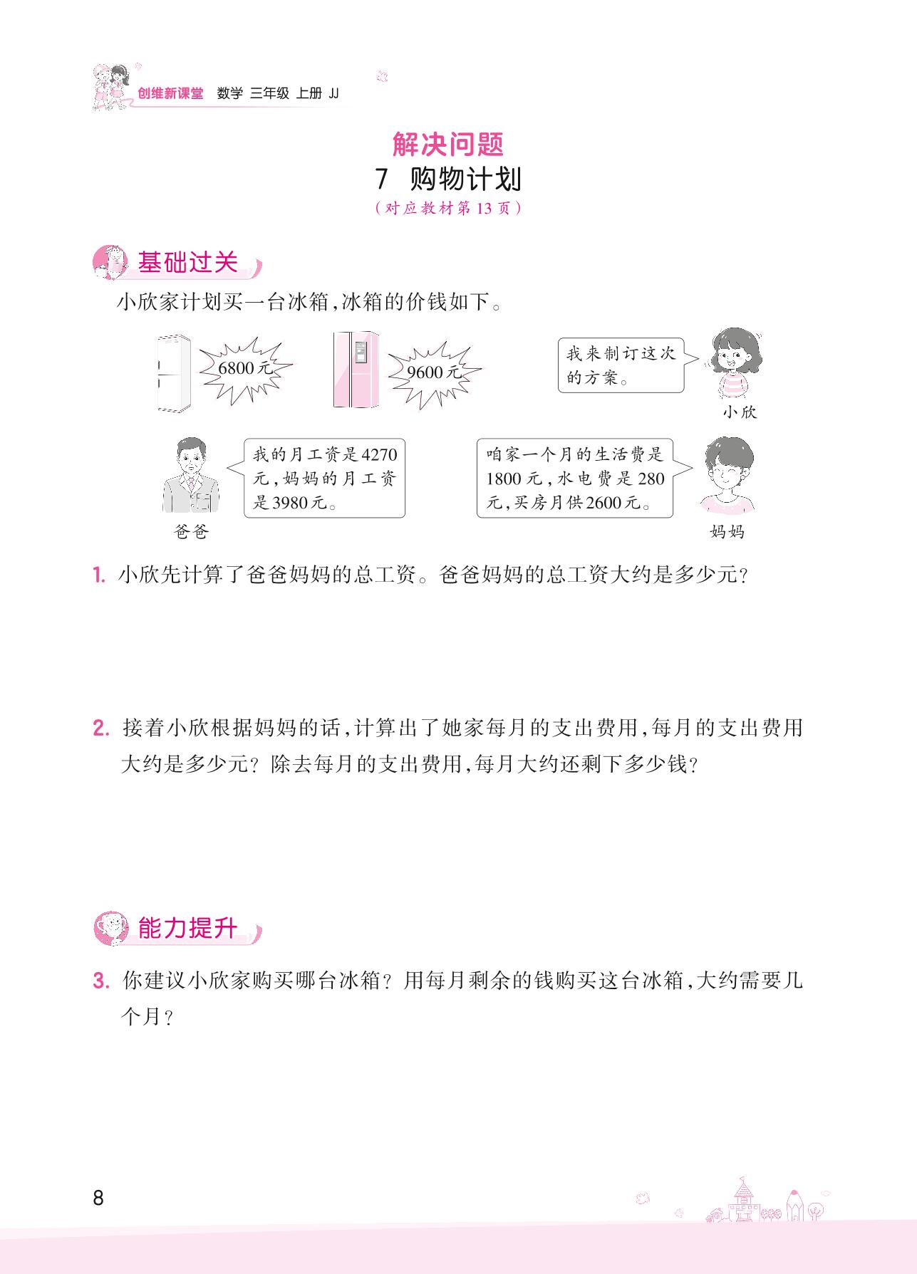 2022上册三年级数学冀教版 一 生活中的大数——7 购物计划