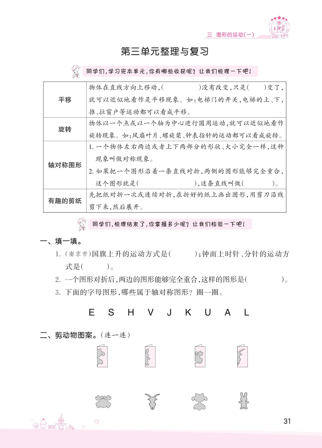 2022上册三年级数学冀教版 三 图形的运动(一)——第三单元整理与复习