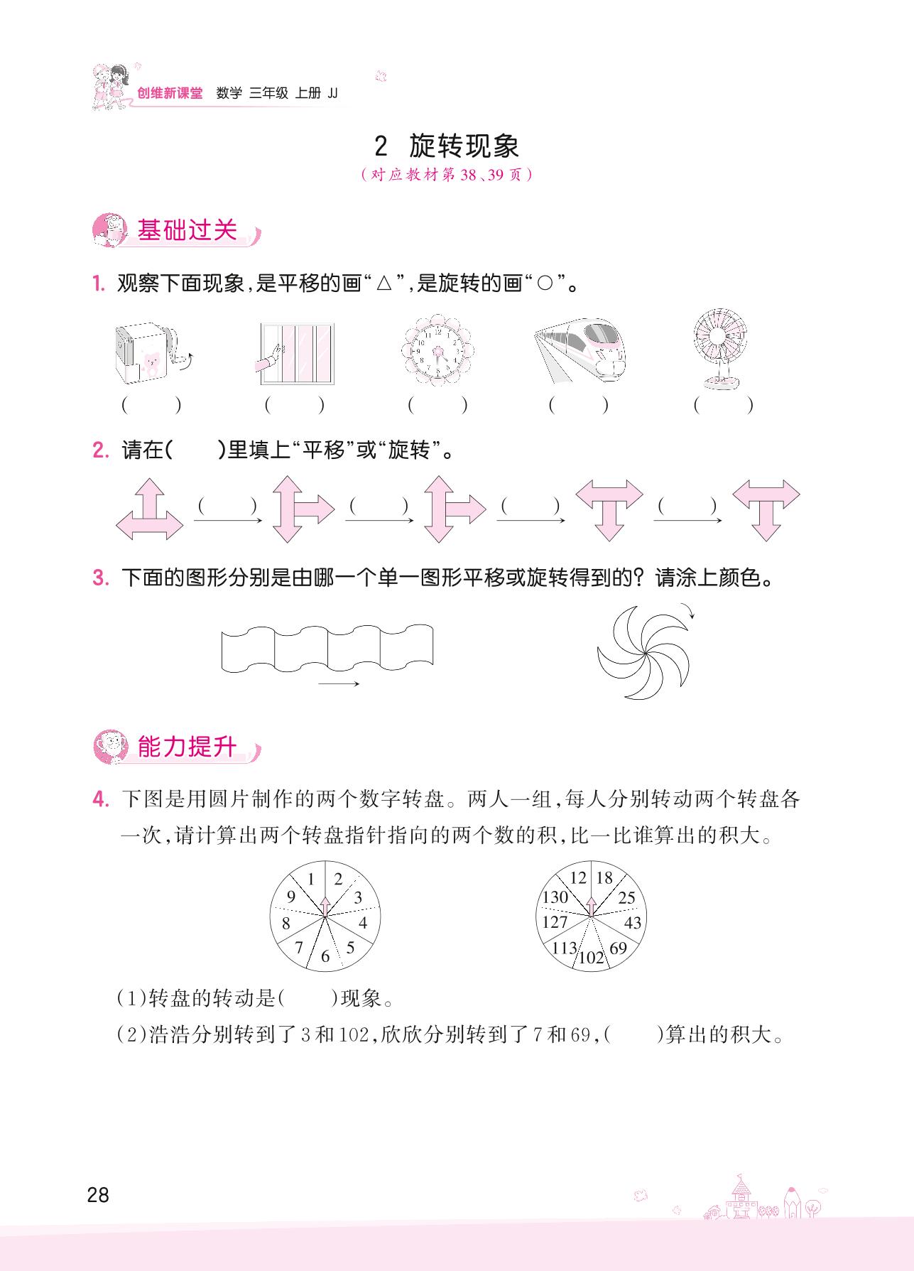 2022上册三年级数学冀教版 三 图形的运动(一)——2 旋转现象