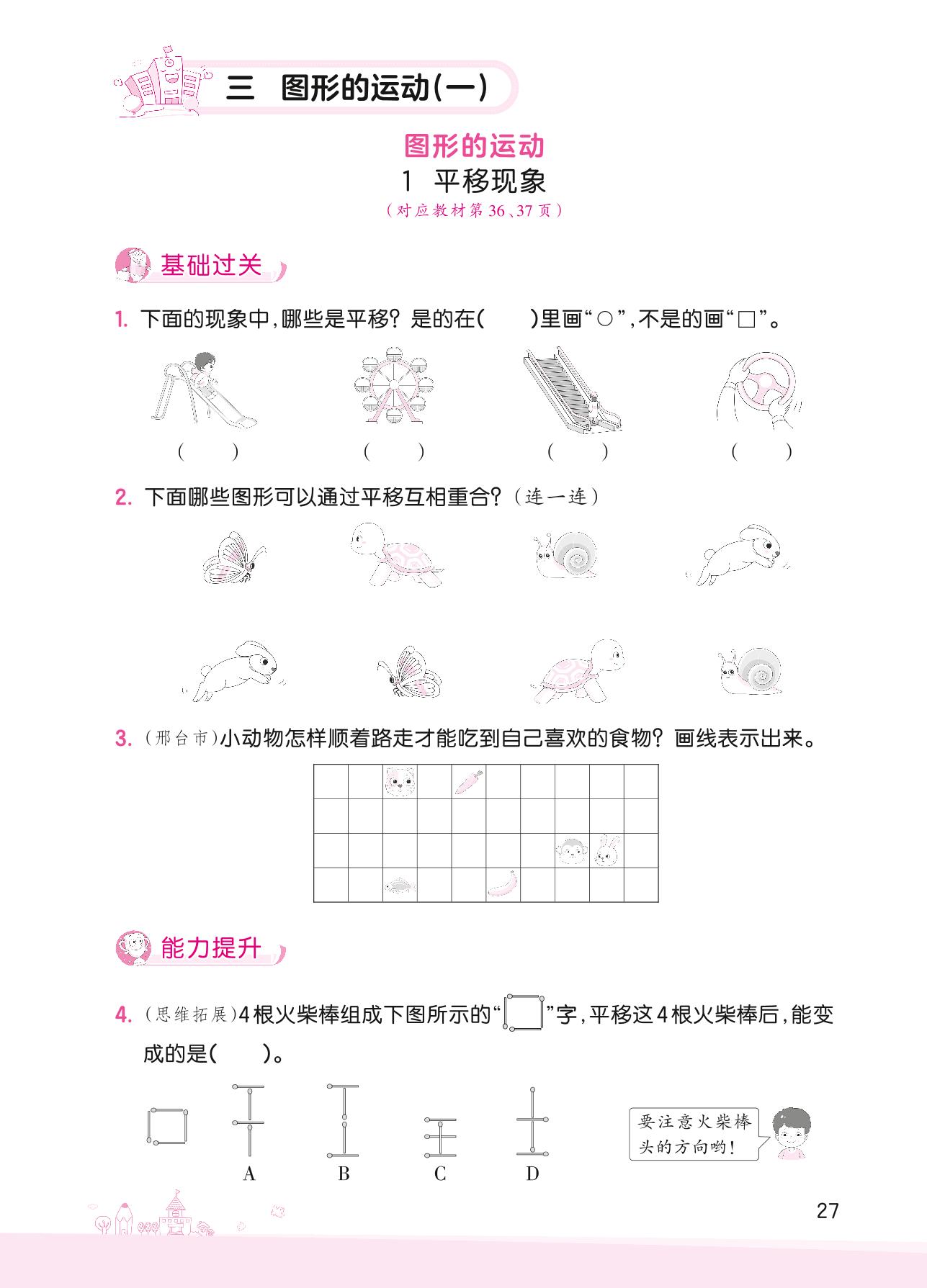2022上册三年级数学冀教版 三 图形的运动(一)——1 平移现象