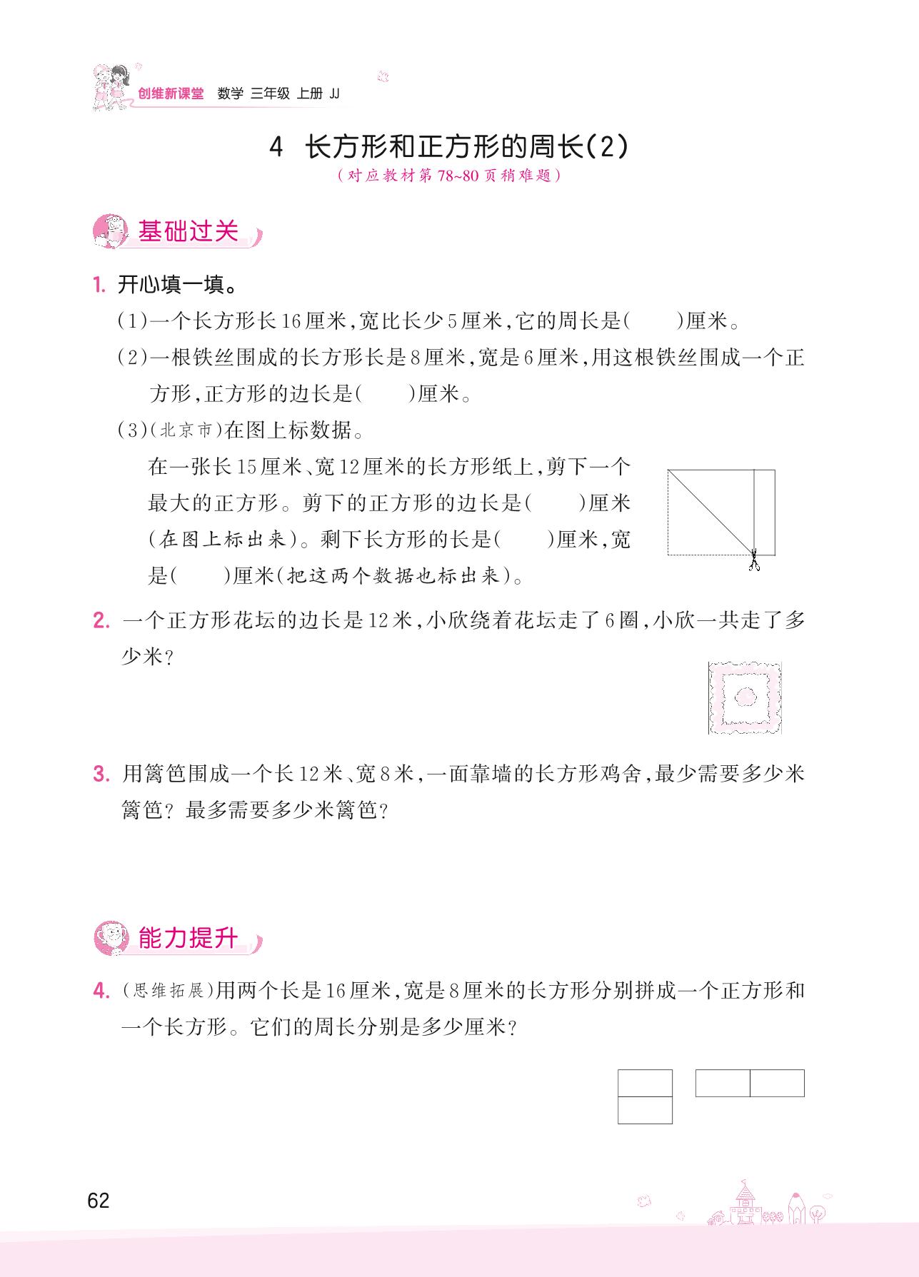 2022上册三年级数学冀教版 六 长方形和正方形的周长——4 长方形和正方形的周长(2)