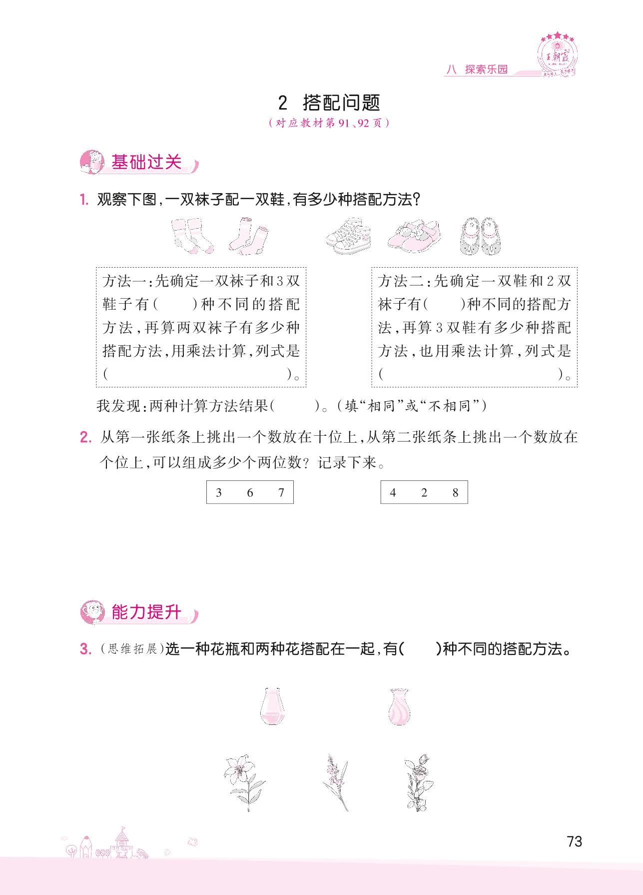 2022上册三年级数学冀教版 八 探索乐园——2 搭配问题