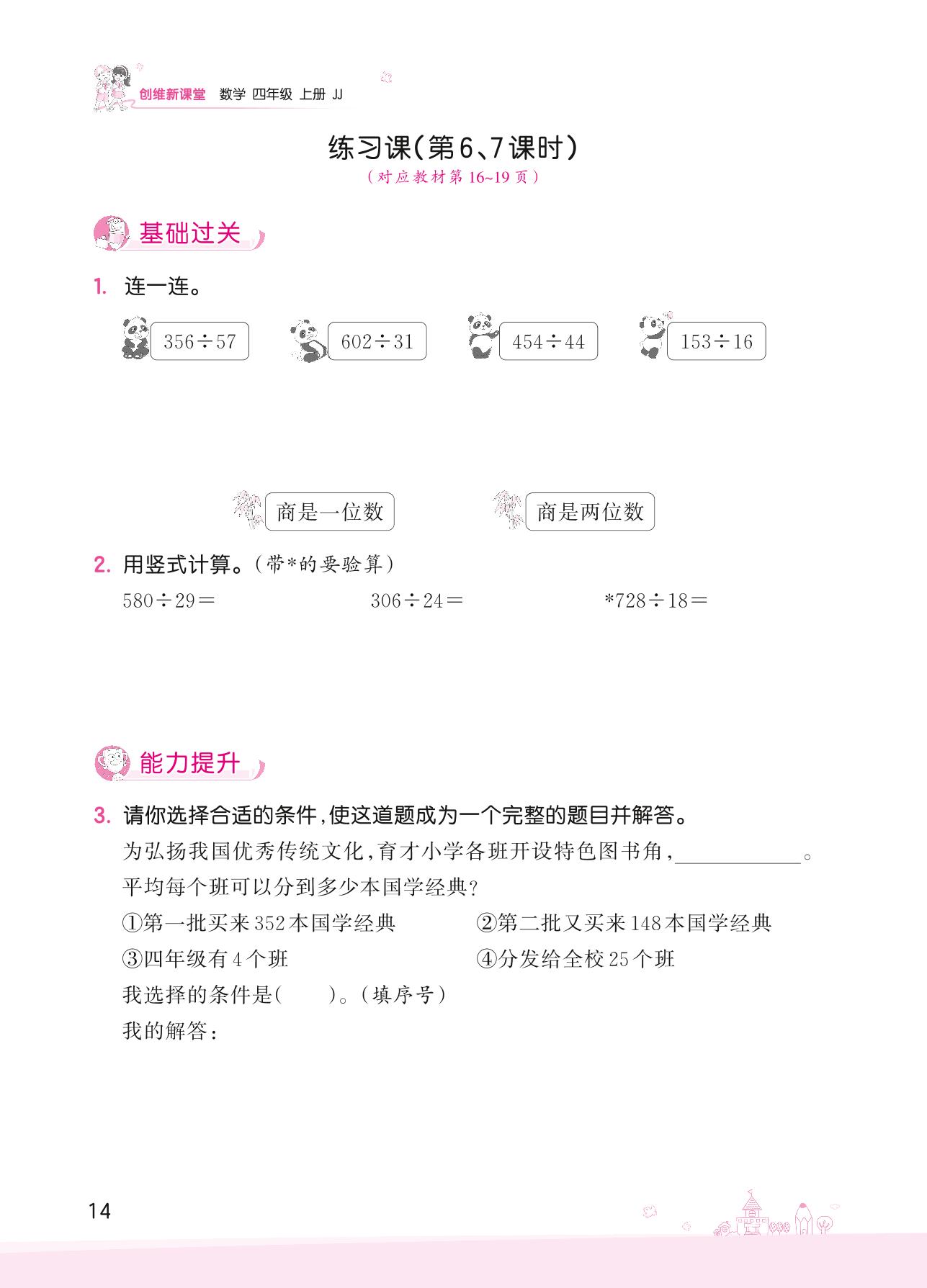 2022上册四年级数学冀教版 二 三位数除以两位数——练习课(第6、7课时)