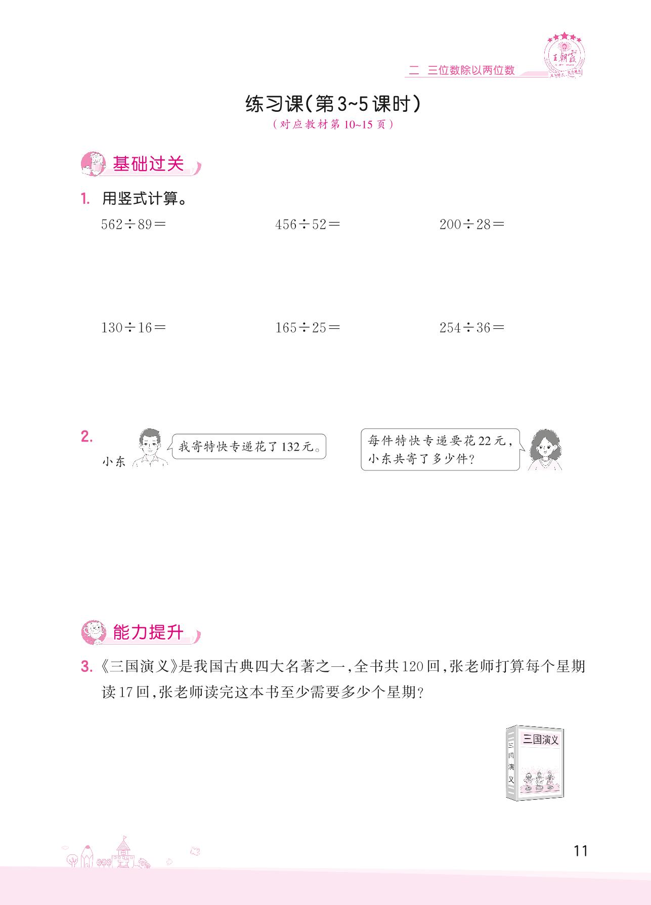 2022上册四年级数学冀教版 二 三位数除以两位数——练习课(第3~5课时)
