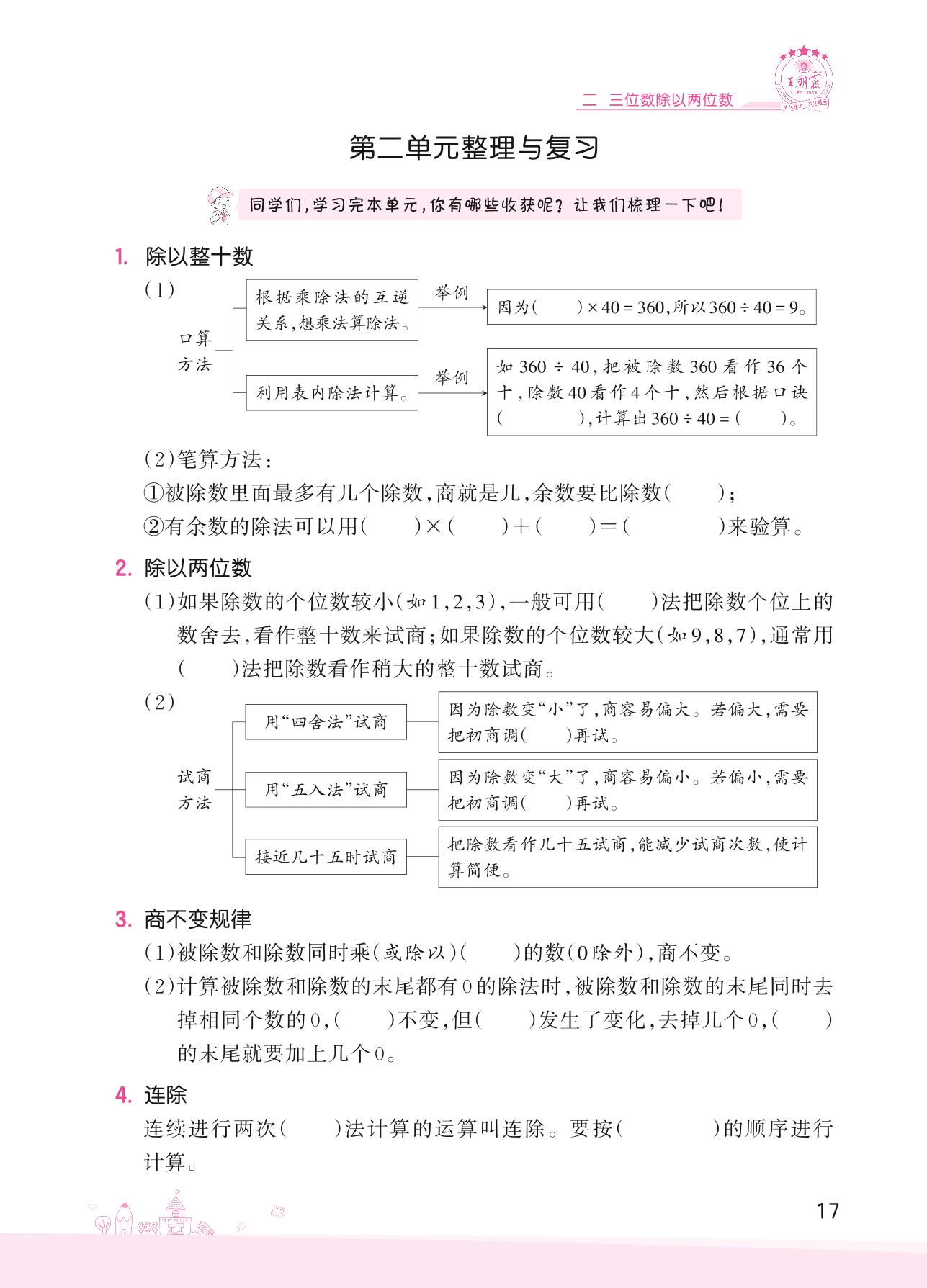 2022上册四年级数学冀教版 二 三位数除以两位数——第二单元整理与复习
