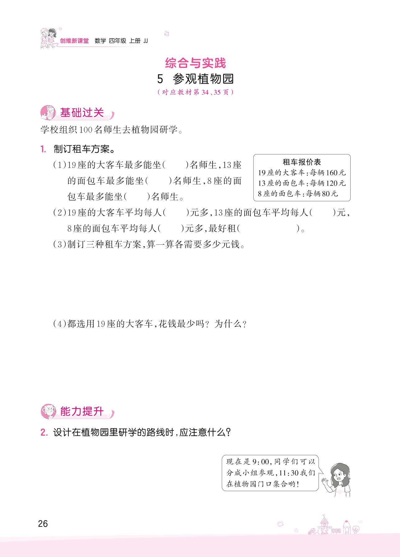 2022上册四年级数学冀教版 三 解决问题——5 参观植物园