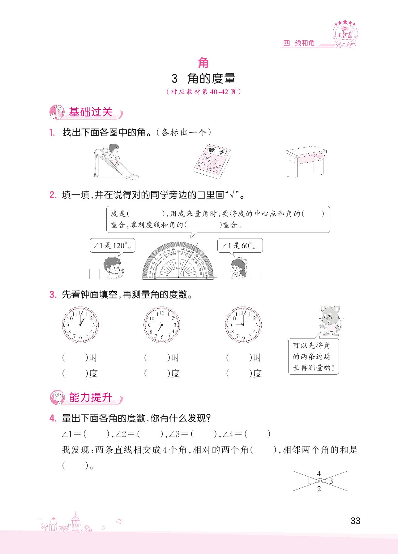 2022上册四年级数学冀教版 四 线和角——3 角的度量