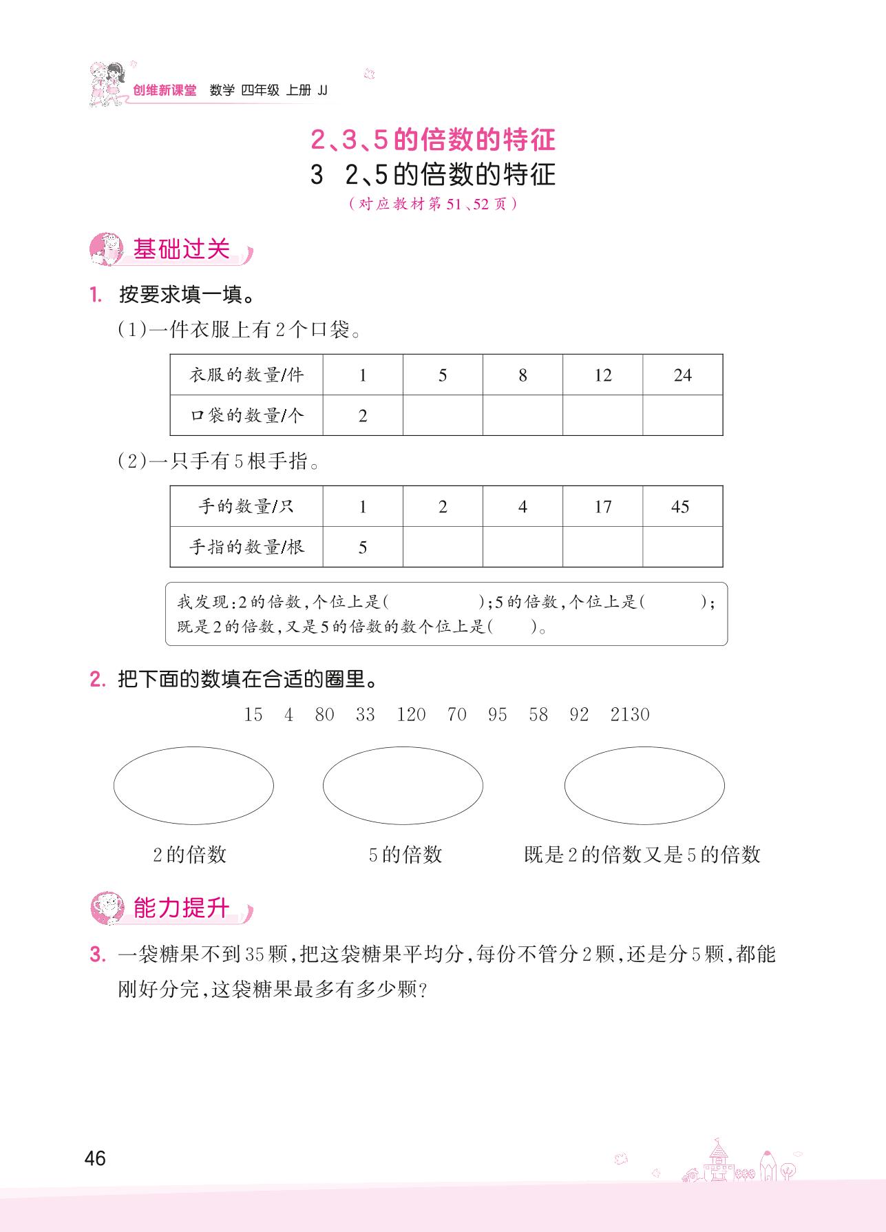 2022上册四年级数学冀教版 五 倍数和因数——3 2、5的倍数的特征