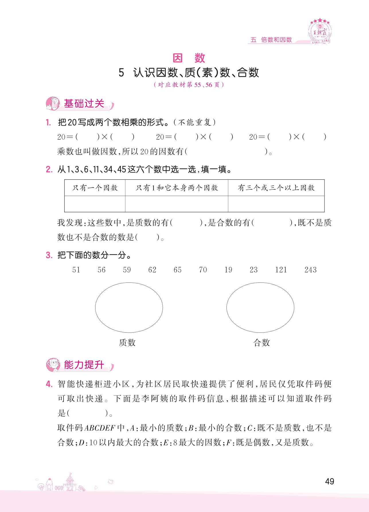 2022上册四年级数学冀教版 五 倍数和因数——5 认识因数、质(素)数、合数
