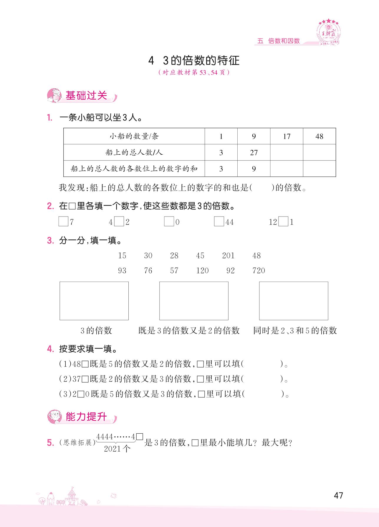 2022上册四年级数学冀教版 五 倍数和因数——4 3的倍数的特征