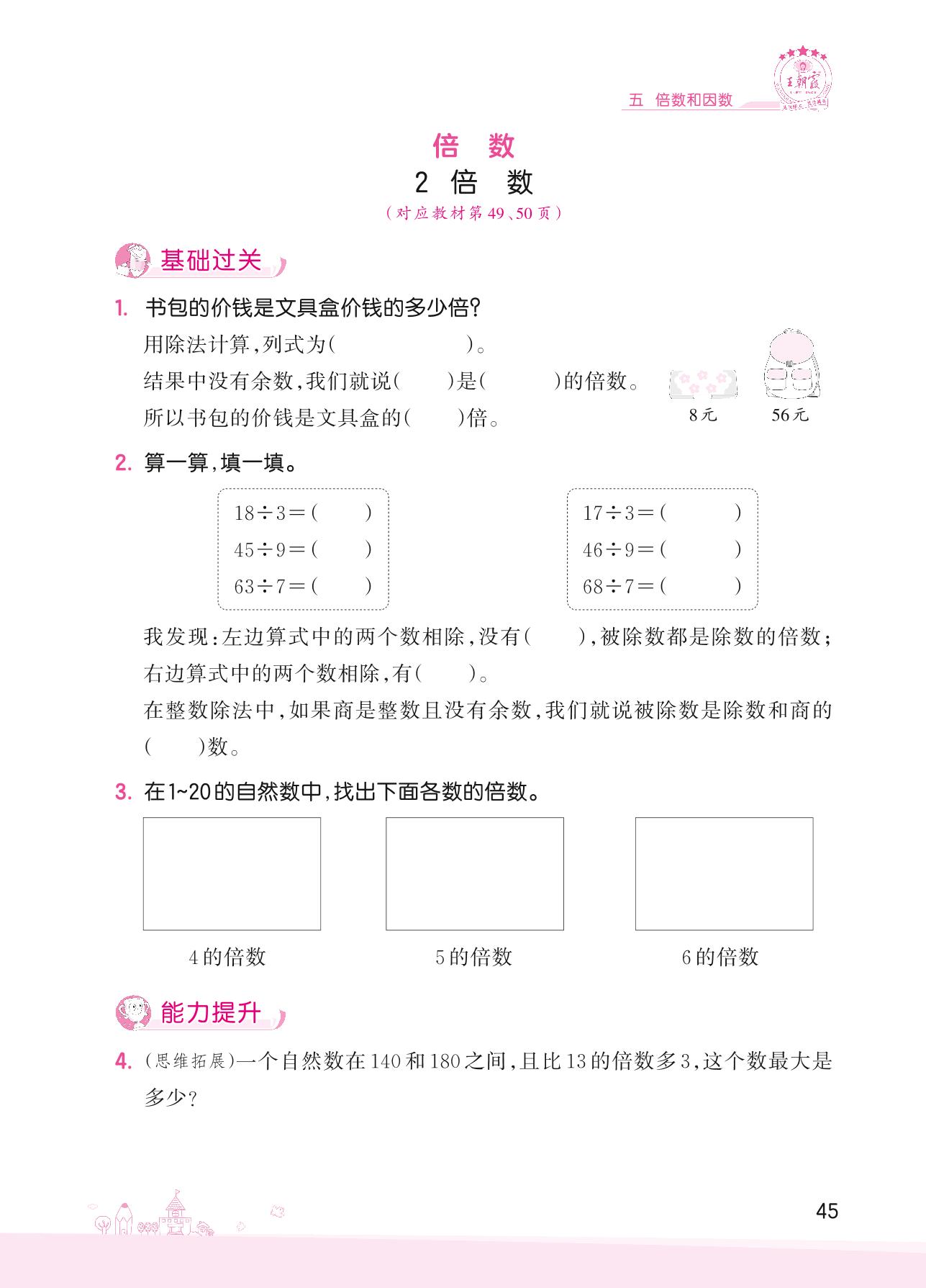 2022上册四年级数学冀教版 五 倍数和因数——2 倍数