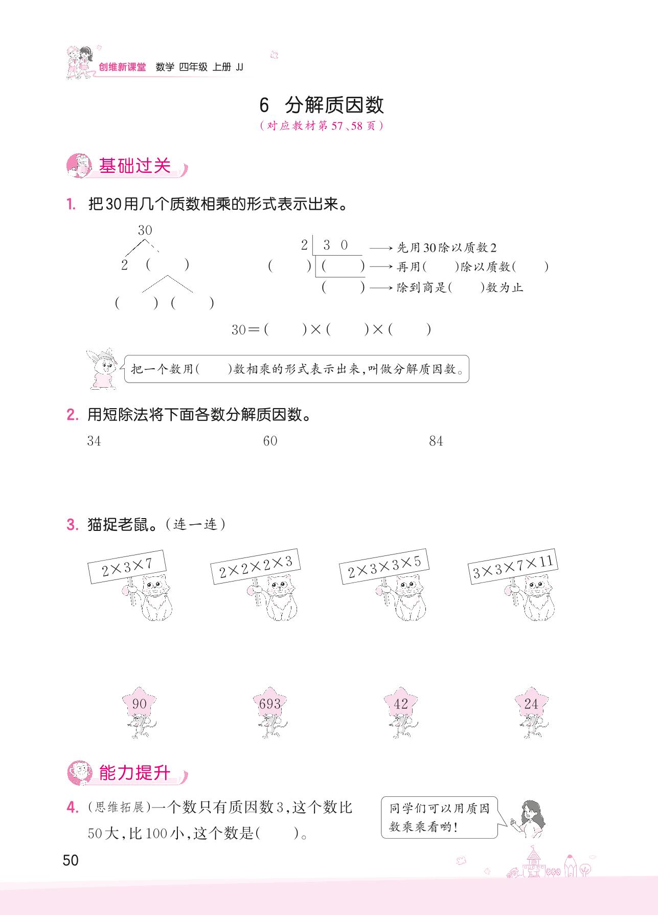 2022上册四年级数学冀教版 五 倍数和因数——6 分解质因数