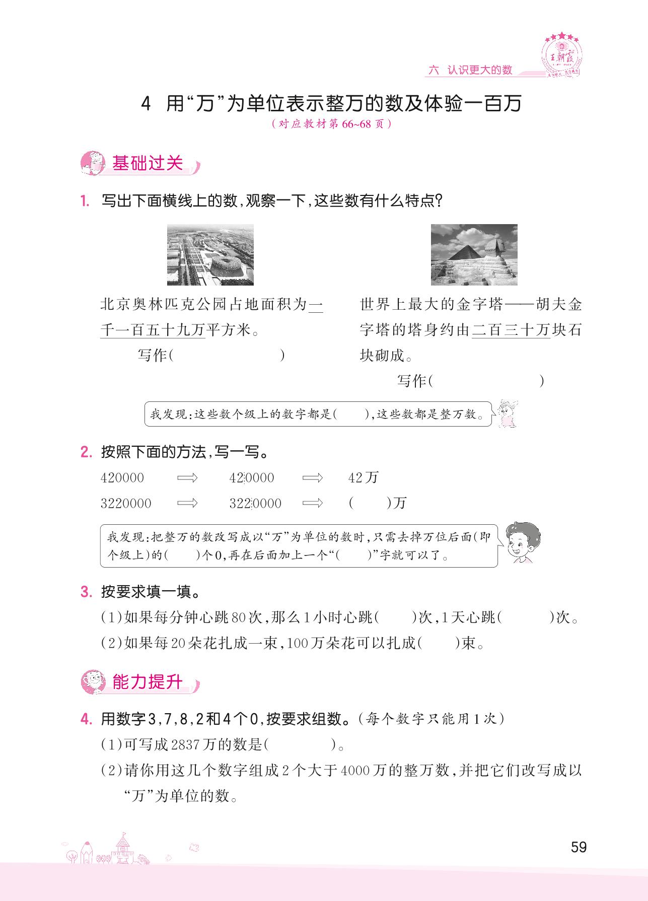 2022上册四年级数学冀教版 六 认识更大的数——4 用“万”为单位表示整万的数及体验一百万