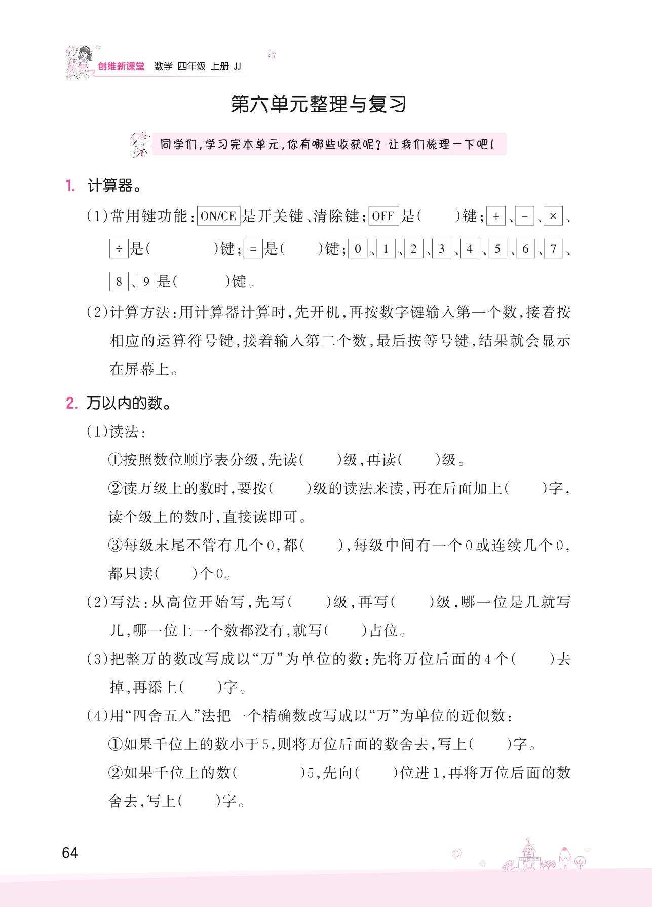2022上册四年级数学冀教版 六 认识更大的数——第六单元整理与复习