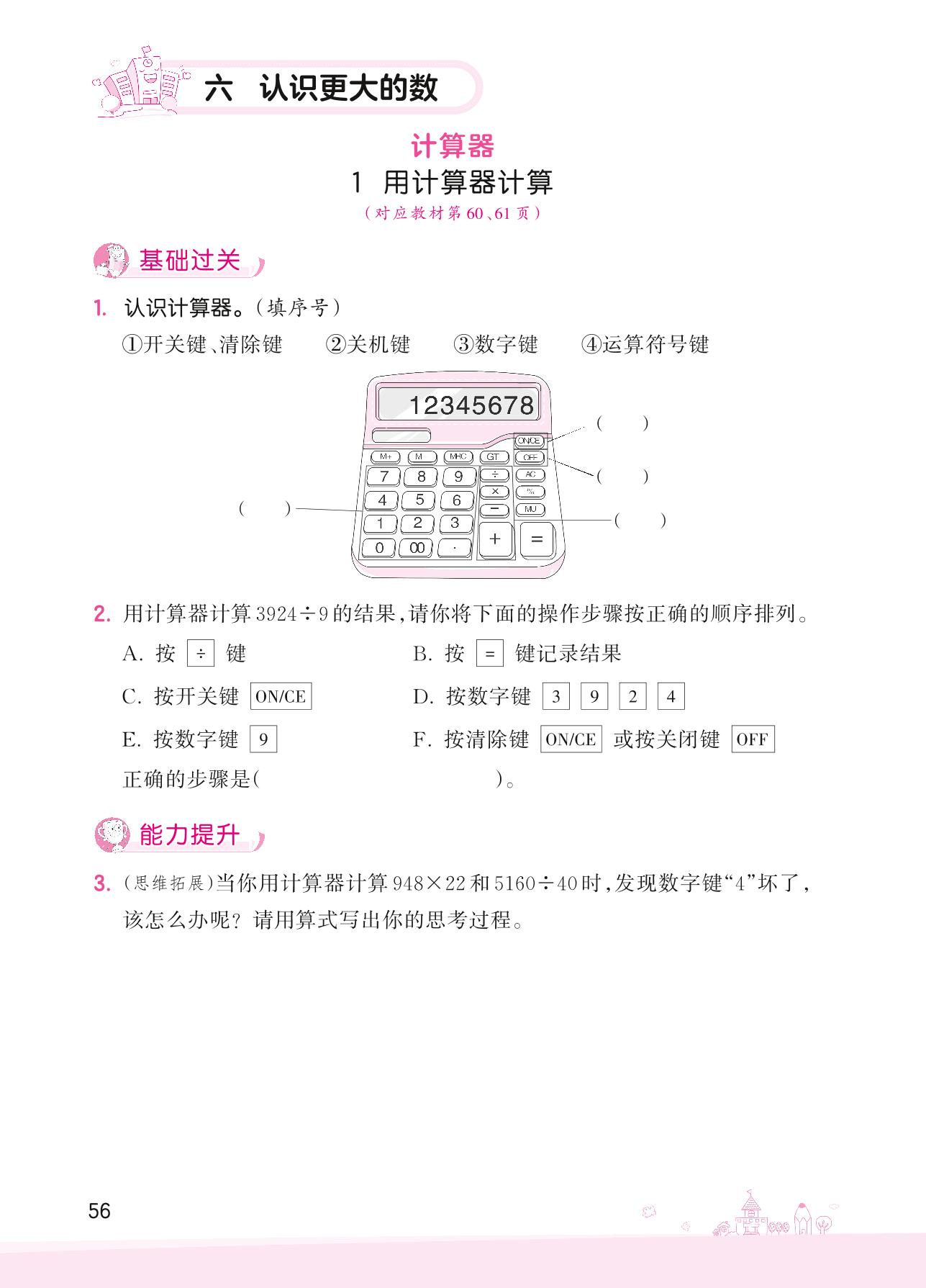 2022上册四年级数学冀教版 六 认识更大的数——1 用计算器计算