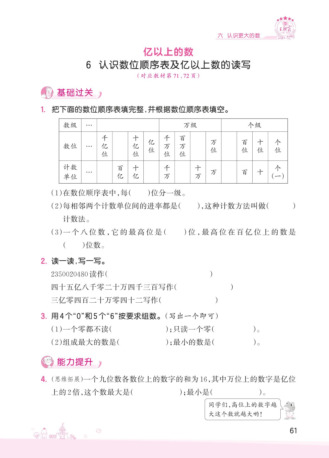 2022上册四年级数学冀教版 六 认识更大的数——6 认识数位顺序表及亿以上数的读写
