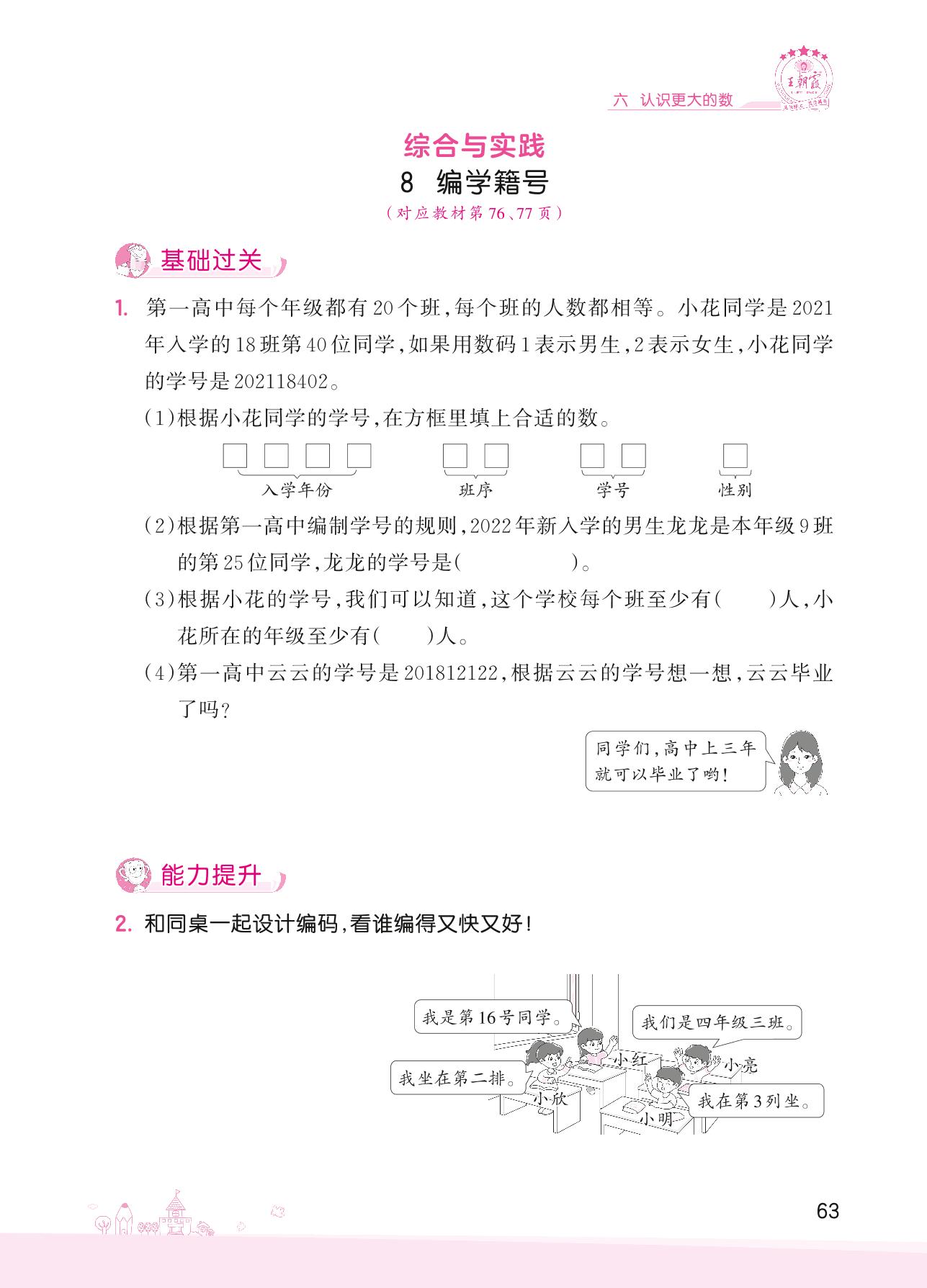 2022上册四年级数学冀教版 六 认识更大的数——8 编学籍号