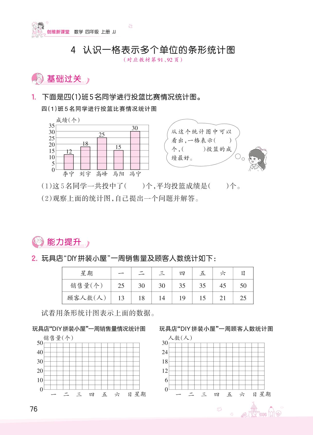 2022上册四年级数学冀教版 八 平均数和条形统计图——4 认识一格表示多个单位的条形统计图