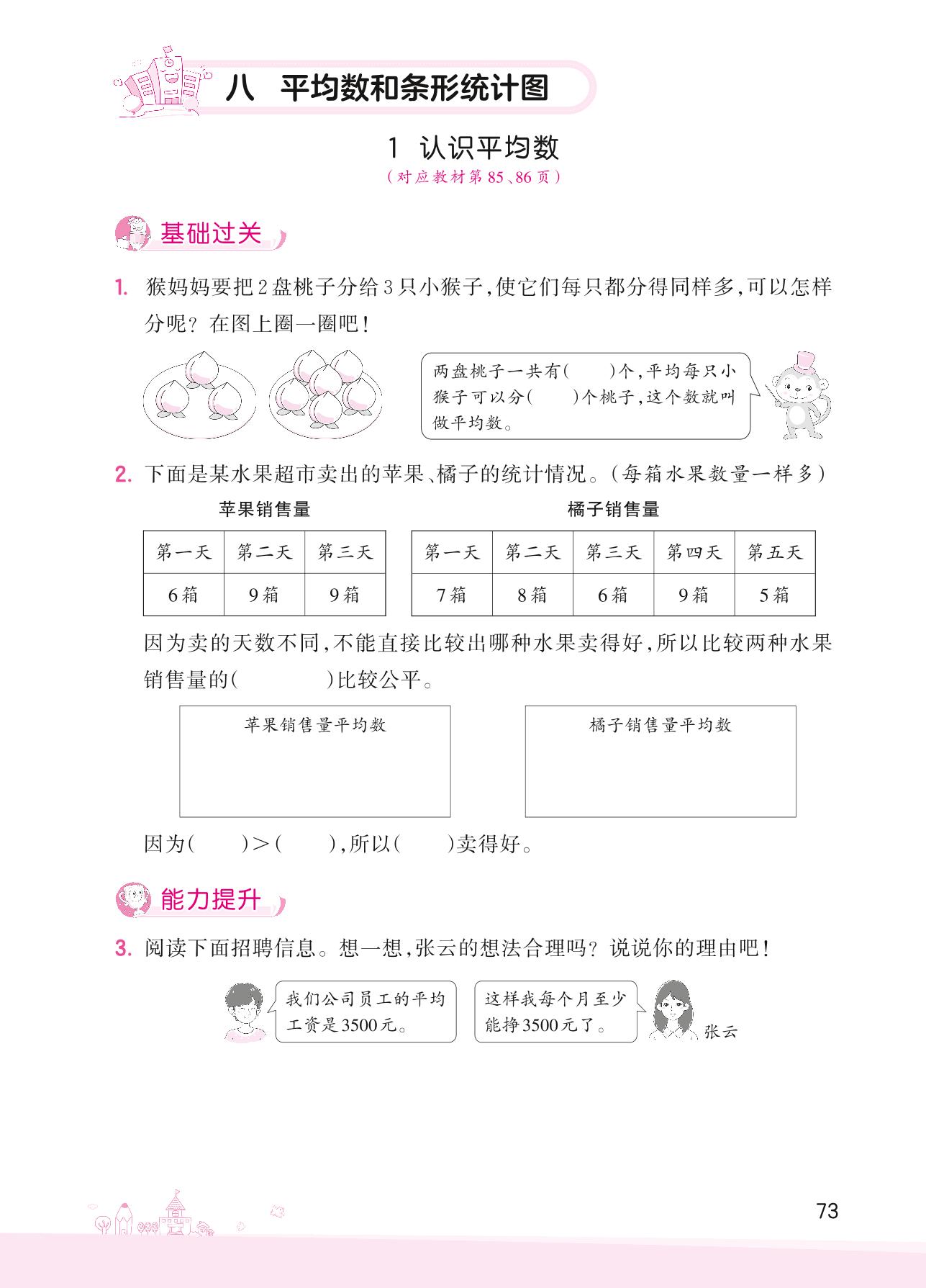 2022上册四年级数学冀教版 八 平均数和条形统计图——1 认识平均数