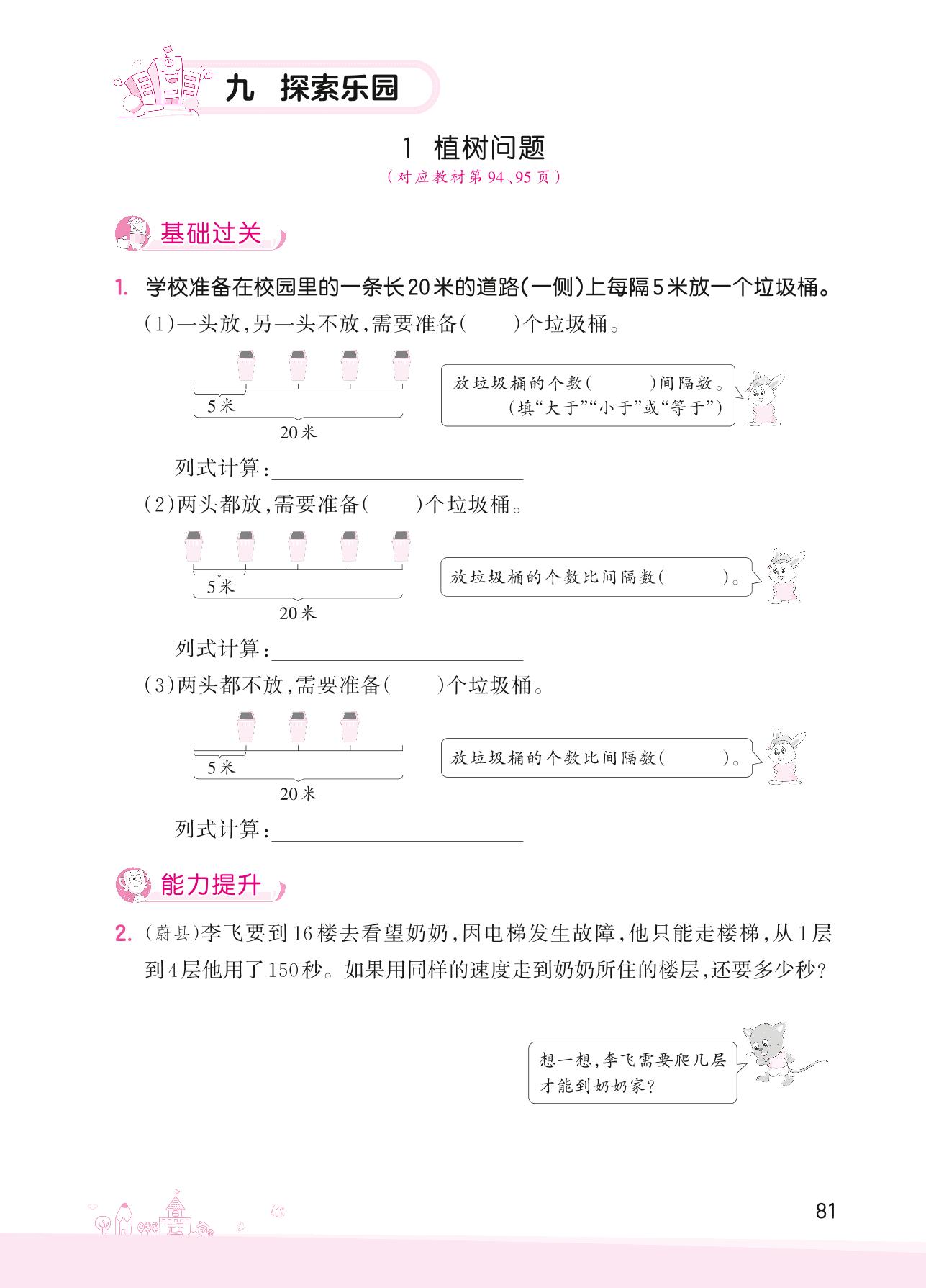 2022上册四年级数学冀教版 九 探索乐园——1 植树问题
