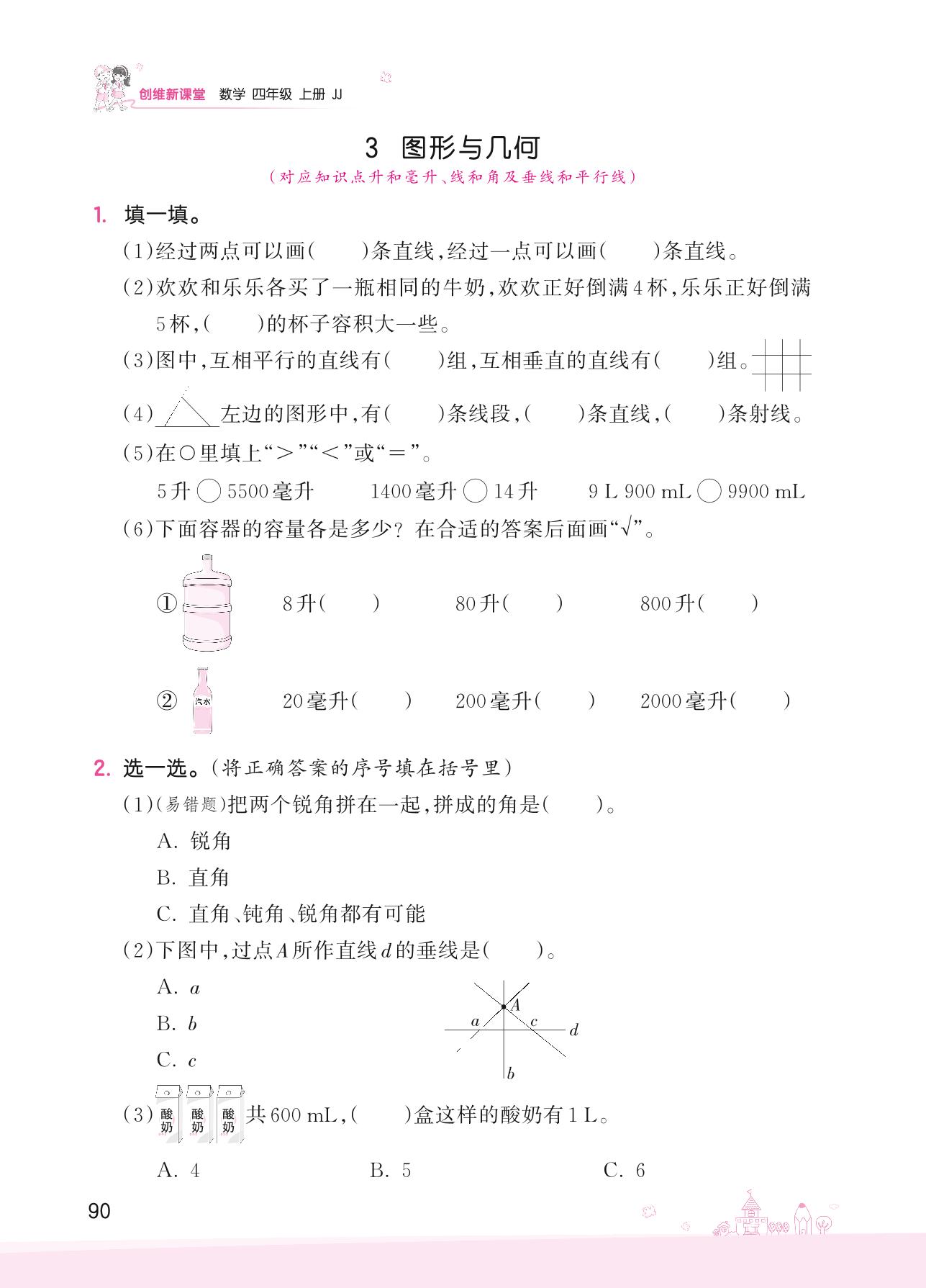 2022上册四年级数学冀教版 整理与评价——3 图形与几何