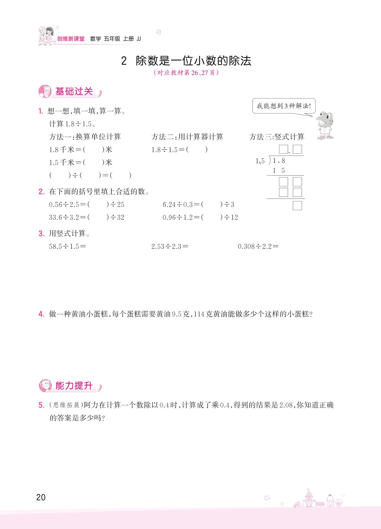 2022上册五年级数学冀教版 三 小数除法——2 除数是一位小数的除法