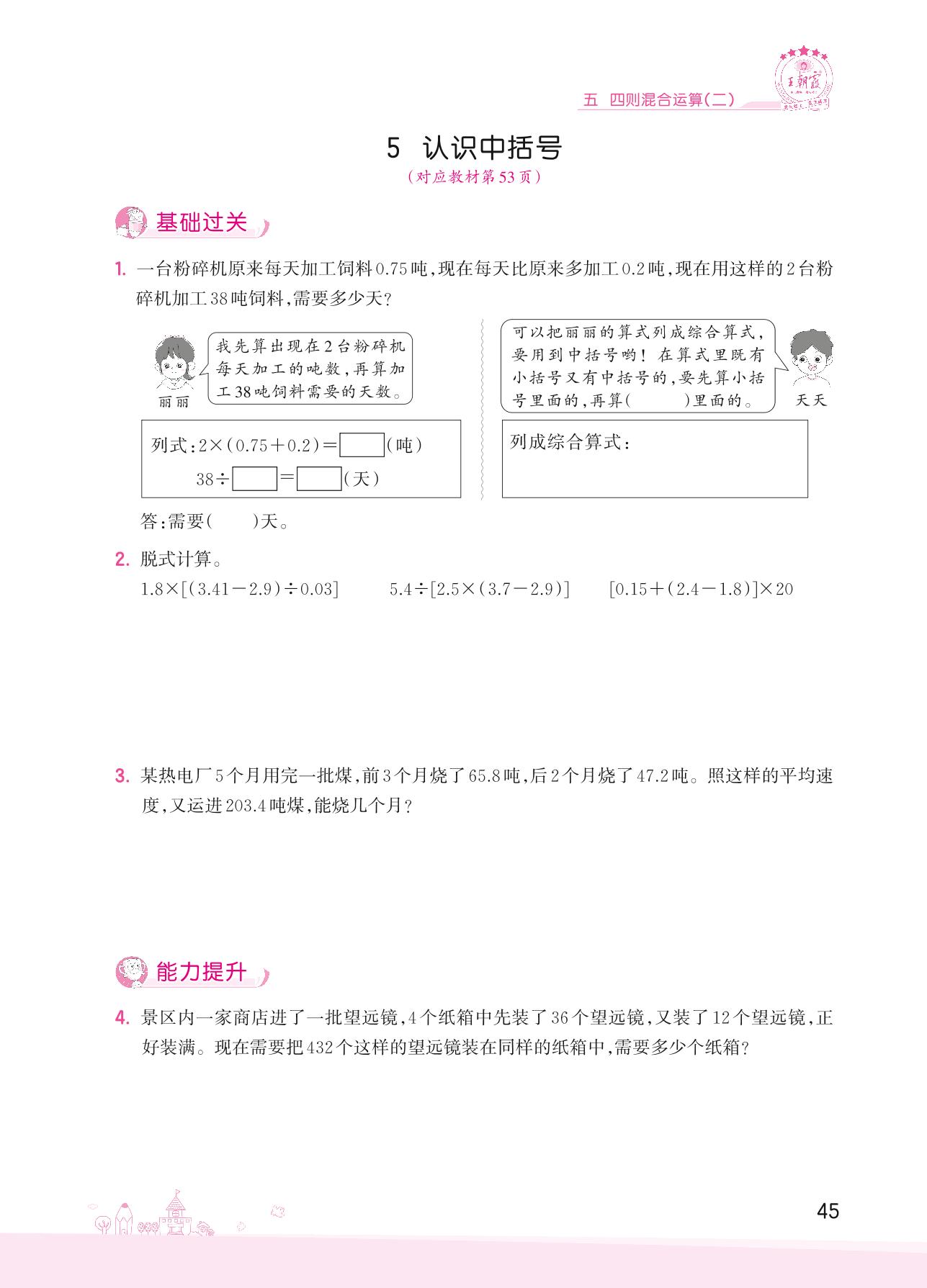 2022上册五年级数学冀教版 五 四则混合运算(二)——5 认识中括号