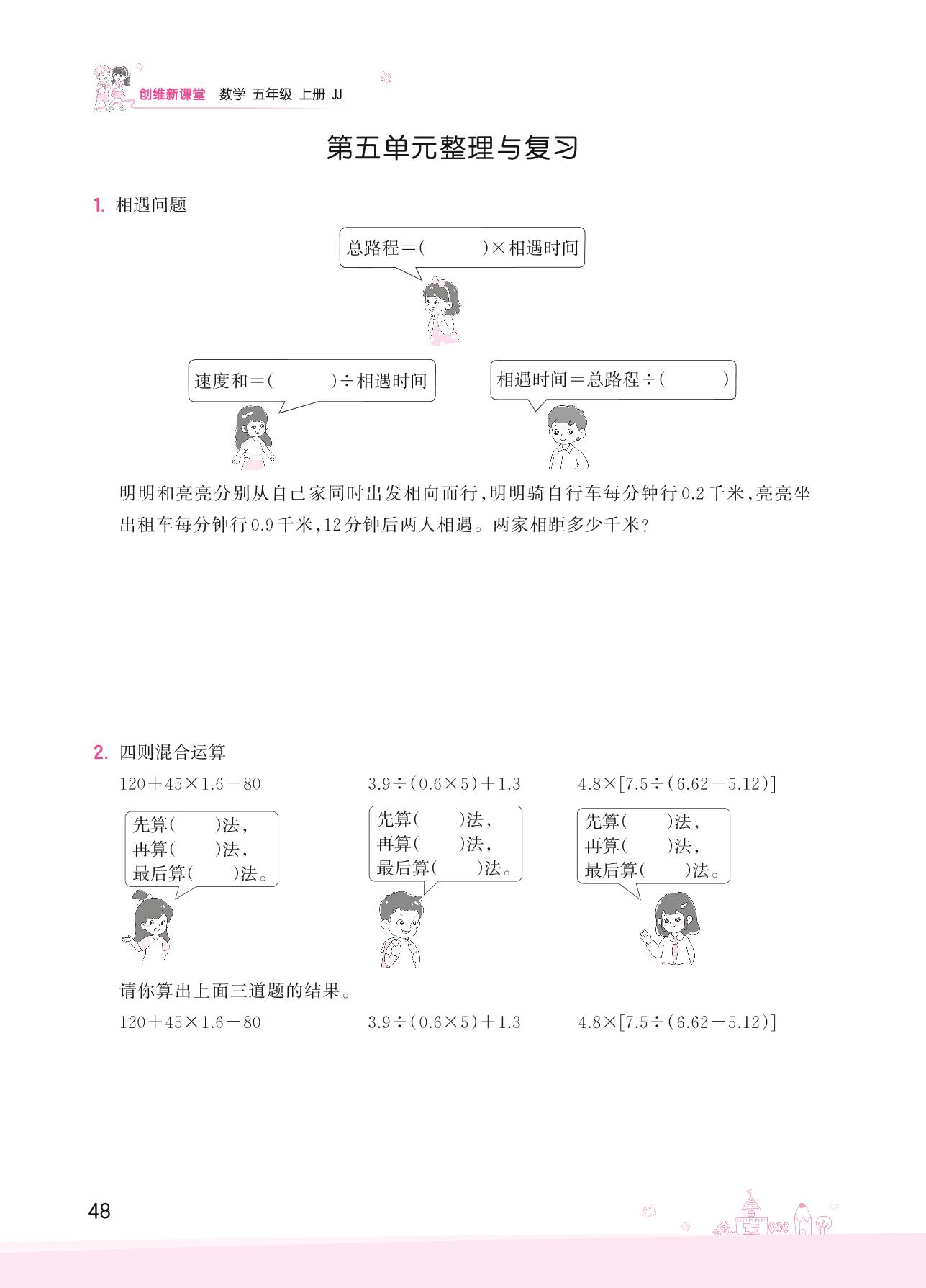2022上册五年级数学冀教版 五 四则混合运算(二)——第五单元整理与复习