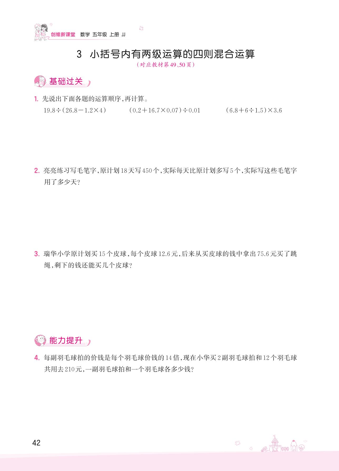 2022上册五年级数学冀教版 五 四则混合运算(二)——3 小括号内有两级运算的四则混合运算